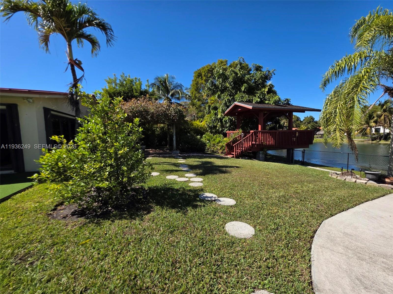 Welcome to this beautifully maintained 1974 waterfront home located in the highly desirable and quiet community of Kendale Lakes. This spacious residence offers breathtaking lakefront views and a seamless indoor–outdoor lifestyle, perfect for both relaxing and entertaining. The home features a large, open kitchen and an expansive family room filled with natural light and stunning views of the water. Sliding doors throughout the living areas open completely to the oversized deck, allowing you to effortlessly blend indoor and outdoor living—ideal for gatherings, entertaining, or enjoying peaceful sunsets by the lake. Surrounded by lush landscaping, the property offers privacy and a serene atmosphere rarely found. A circular driveway provides ample parking and adds to the home’s impressive curb appeal. With generous living spaces, tranquil lake views, and a prime location in a quiet neighborhood, this home is a rare opportunity to enjoy Florida living at its finest. ALARM AND SURVEILLANCE CAMARAS AT PREMISES
