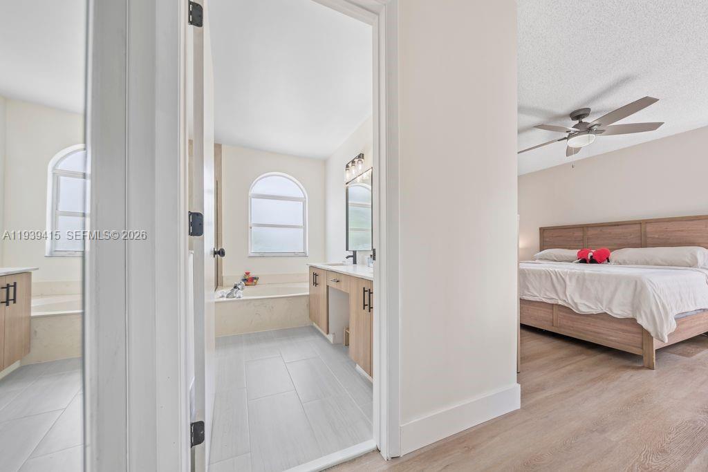 Beautifully updated two-story 3 bedroom, 2.5 bath residence located in the desirable community of Towngate, offering an elegant open concept design with refined finishes throughout. The designer kitchen features quartz countertops, sleek white cabinetry, stainless steel appliances, and a statement island ideal for entertaining. Tile flooring enhances the sophisticated living spaces, complemented by updated bathrooms and a spacious primary suite with a custom walk-in closet. Enjoy a tranquil backyard with serene lake views perfect for relaxing or hosting intimate gatherings. Offering great amenities and a central location just off I-75, surrounded by excellent restaurants and shopping. Schedule your private showing today.