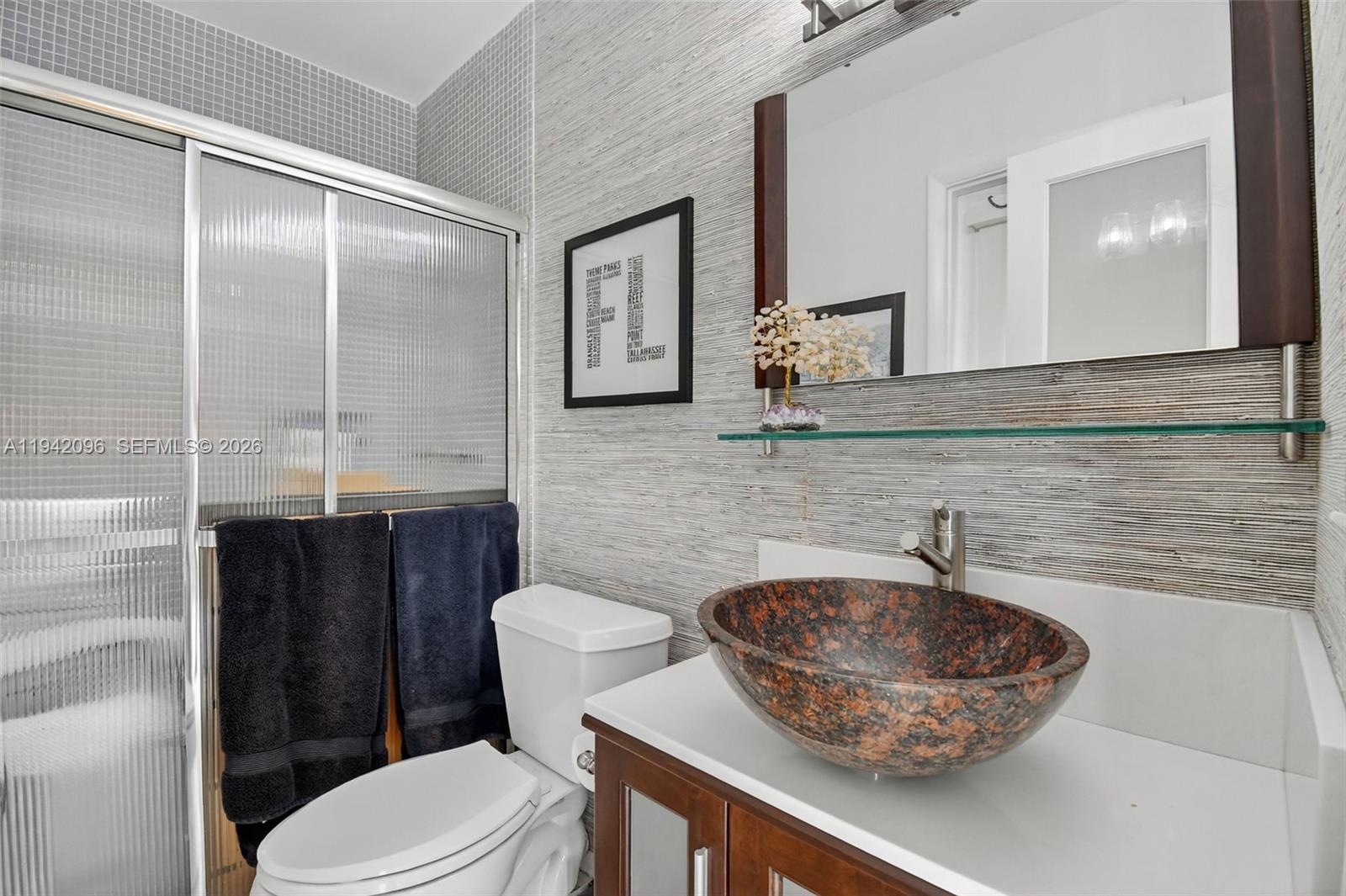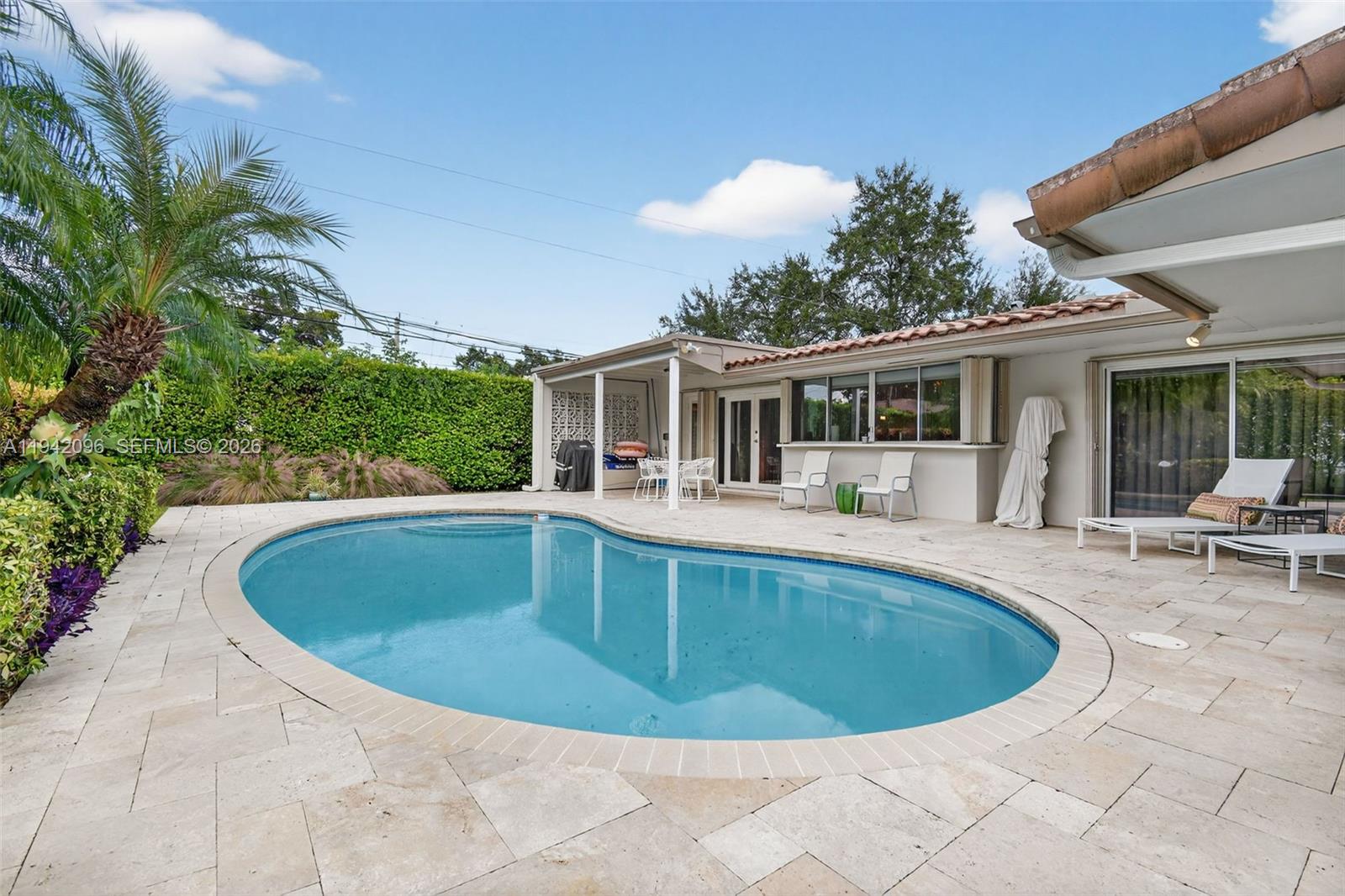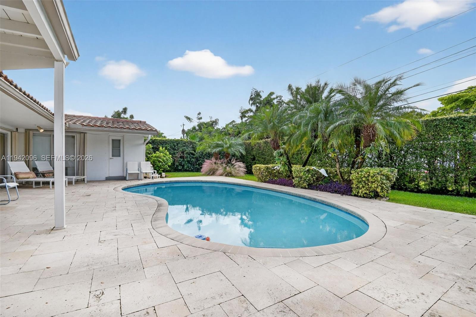Welcome to this beautifully upgraded single-story residence offering timeless curb appeal located in the highly desired neighborhood of Highland Lakes situated on a quiet cul-de-sac. Property offers convenient access to nearby Aventura Mall shopping, top rated schools, great dining options, houses of worship, and major roadways while maintaining a peaceful residential feel. This inviting home features 3Bedrooms/3Full baths/library-Den (possible 4th bedroom), a super cozy family/media room which includes ceiling installed Atmos speakers. In addition, it offers a classic tile roof (pre-inspected and professionally maintained 2025), circular driveway, enhanced by mature palms and greenery. Home is equipped with impact windows & shutters, Generac generator that provides peace of mind during any storm, 4 year old high-efficiency HVAC with new ductwork. Oversized kitchen that serves as the heart of the home, offering custom wood cabinetry, granite countertops, stainless steel appliances, double wall ovens, ample storage, and generous counter space—ideal for both everyday living and entertaining. Three updated bathrooms bright open living room & dining areas are complemented by recessed lighting and natural light throughout. Step outside to a serene backyard retreat featuring a covered patio and a freeform pool surrounded by travertine-style decking and mature landscaping, creating a private oasis perfect for relaxing or hosting guests.