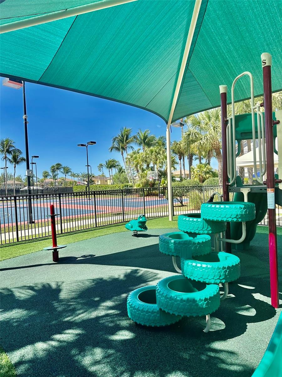 This beautiful 4-bedroom/2.5 bathroom home is located in the desirable community Madison Green. Home features: impact windows upstairs, hurricane shutter panels for downstairs, keyless front door entry, ring door bell, external cameras, outdoor speakers in patio and an electric panel for portable power. Water heater, cooktop & dishwasher recently replaced. Corner Cul-De-Sac Lot! This fully fenced lot is one of the largest in Pinehurst and has alot of room for a pool. Enjoy outdoor living in your private oasis. Home features a covered and screened patio. Madison Green is renowned for its resort style living with beautiful surroundings and convenient location. Lots of amenities and basic cable & internet included. Master Association hold various Community events throughout the year. This Community if perfect for families. Some of the amenities include; a beautiful well-kept clubhouse, large pool, spa, kids pool, tennis courts, basketball courts and gym.