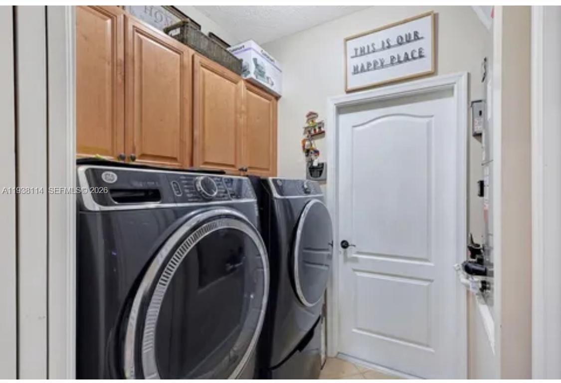 A Must-See! Located on an oversized corner lot in the desirable and quiet Southbend area, this gorgeous home offers 3 bedrooms, 2.5 bathrooms, and a versatile two-car garage equipped with A/C, cabinetry, stove, and microwave—perfectly suited as an additional party or entertainment room. Enjoy exceptional indoor/outdoor living designed for comfort and entertaining. The extended patio features a BBQ area overlooking a beautiful backyard with a swimming pool enclosed by a 2024 aluminum screen. The property is fully secured with concrete fencing and a 2024 PVC fence for added privacy. The lush landscaping includes palms, fruit trees, and a variety of plants, complemented by a well-water sprinkler system. Recent upgrades include a 2024 pool pump, gutters installed in 2023, a new roof (2023), and solar panels installed in 2023 for energy efficiency. Inside, the home features beautiful granite countertops, a new electric stove, and a smart refrigerator—making this property truly move-in ready.