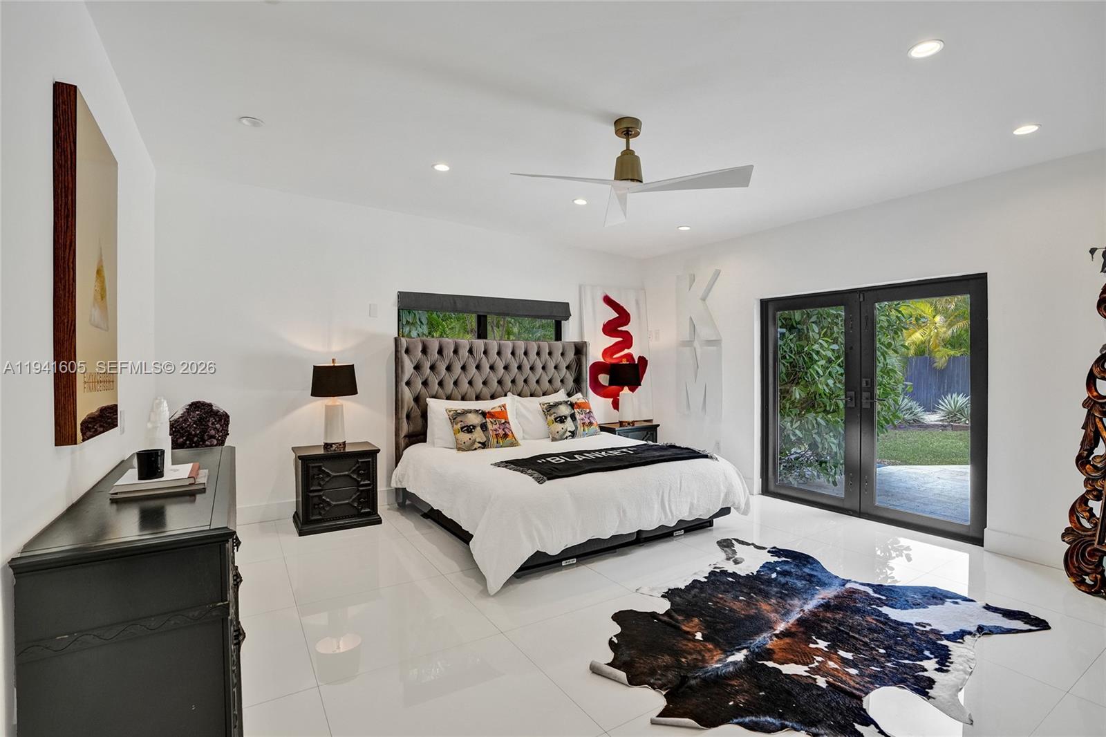This private residential oasis offers 5 bedrooms, a den, and 4.5 bathrooms, ideally located on a quiet estate street on a generous corner lot. The home features two primary suites with renovated spa-inspired bathrooms, plus three additional guest bedrooms— one with an en-suite and the other two rooms sharing a Jack and Jill configuration. Stylish porcelain floors flow throughout the main living areas, complementing the convenient chef’s kitchen with gas cooking, island cooktop, and newer appliances including dual natural gas ranges, multiple refrigerators, and ample storage. A walk-in utility room/pantry with extra refrigeration enhances functionality, while a flexible den serves perfectly as a gym, office, or media room. A custom bar with a luxury, custom- made Panda marble countertop, beverage cooler, and sink adds a refined entertaining touch. Outdoors, enjoy a resort-style wellness experience featuring a natural gas–heated saltwater pool with lighting, a freestanding infrared sauna, and a cold plunge. Additional highlights include exterior hard-wired cameras, a Pelican whole-house water filtration system, two tankless gas water heaters, and three separate A/C systems for efficient zoned comfort. Constructed of concrete block and outside the flood zone, the home also benefits from climate-controlled exterior storage, and extensive infrastructure upgrades—offering peace of mind, luxury, and turnkey living. Chandeliers, art and personal property are excluded from the sale.
