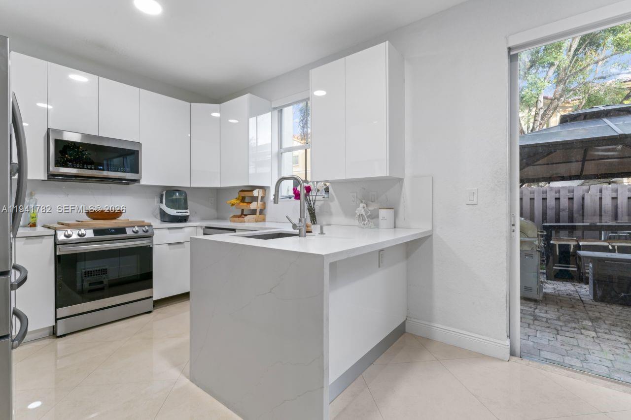 Ideal location! Spacious and well-appointed 3-bedroom, 2.5-bath residence, perfect for the whole family. This home features ceramic tile floors throughout, beautiful finishes, and stainless steel appliances. It offers generous living areas, ample closet space in the bedrooms, and a private patio ideal for outdoor enjoyment. Includes an in-unit washer and dryer for added convenience. Located in a desirable golf park community with lush landscaping and a community pool. Your new home is waiting for you.