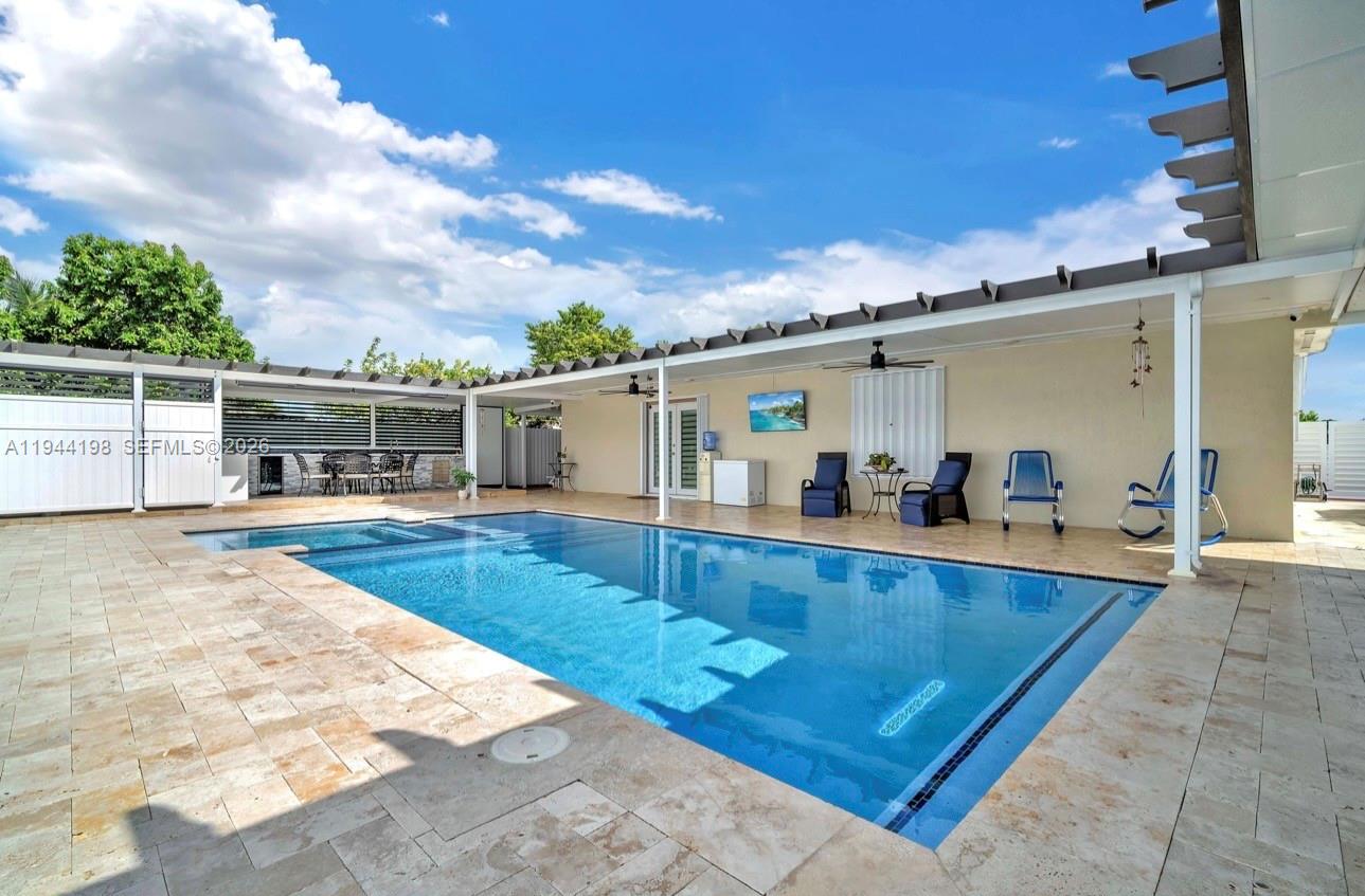 Stunning, fully remodeled 4-bedroom, 3-bath single-family home designed for both comfort and luxury living. Step outside to your private resort-style backyard, complete with a custom built-in BBQ area with gas stove and wine cooler, a heated saltwater pool, relaxing jacuzzi, and a convenient poolside half bath. This home offers peace of mind with new plumbing and electrical systems completed with permits, a 2017 roof and A/C unit. Perfectly located near major highways, supermarkets, dining, and entertainment. A true turnkey property offering luxury, functionality, and an unbeatable lifestyle.