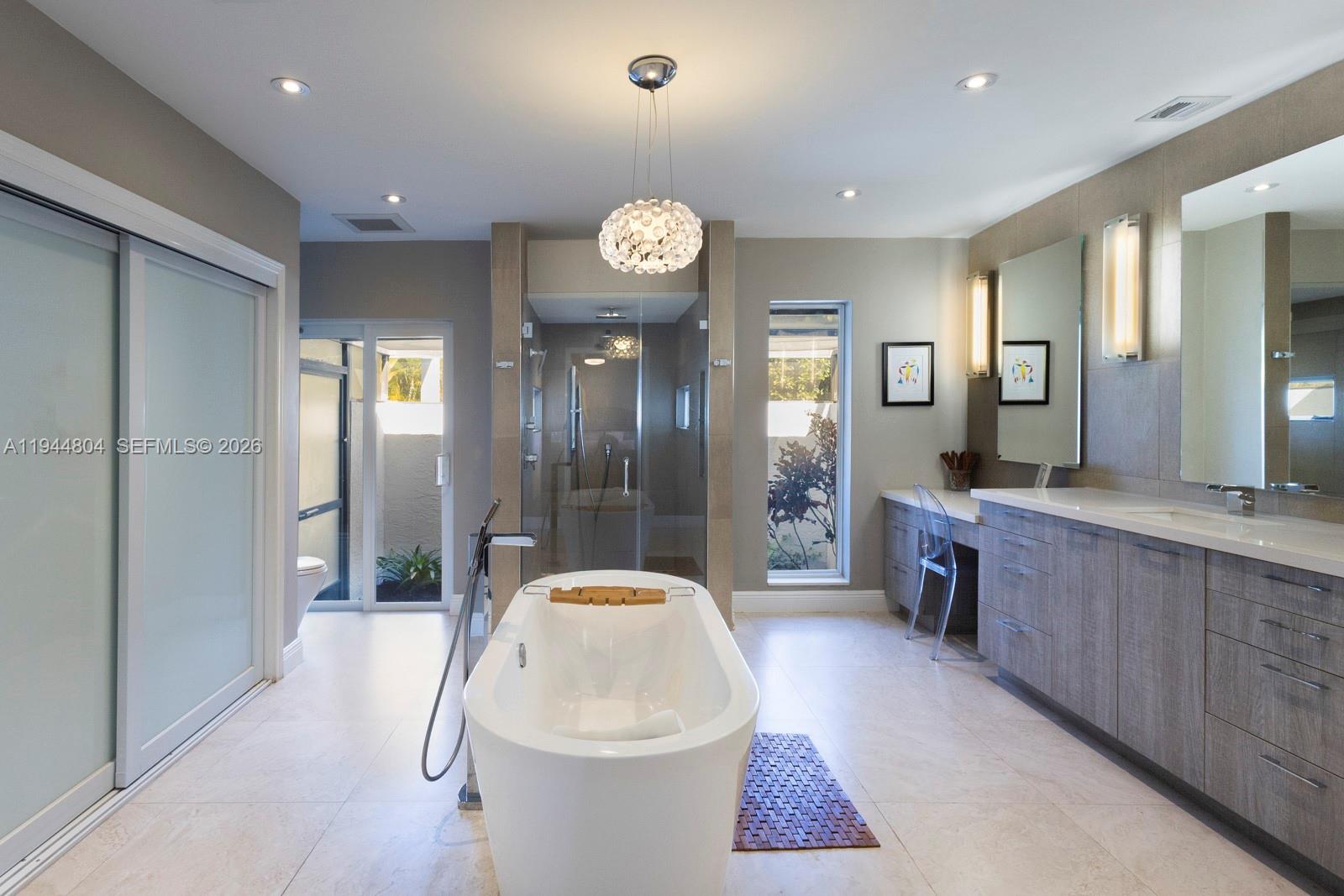 Beautiful, large, and loved family home located on a wonderful corner lot on a quiet street in the heart of The Falls/East Kendall. Fantastic open split-plan layout with recently updated primary bathroom, huge early 2000s kitchen w/wood cabinets and tons of storage, and very large living spaces and bedrooms. Ideal house for entertaining. Brand new 2025 septic tank and drainfield, impact glass windows and doors throughout, indoor laundry room, wet bar off the family room and more. Large covered patio terrace leading to lush and private pool and backyard with plenty of play area. Great schools and central location to all.