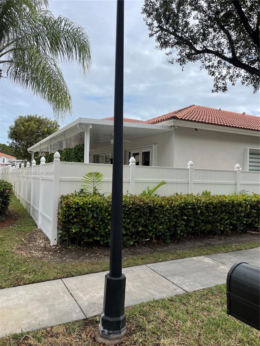 Beautiful corner single-family home featuring one story living with 4 bedrooms, 2 bathrooms, and a 2 car garage. Tile flooring throughout, stainless steel appliances, and a granite countertop kitchen. This home offers an excellent layout with spacious, bright, and open living areas. Multiple upgrades include a newer A/C system and impact doors accordion shutters. Enjoy a private backyard with a pergola, perfect for relaxing or entertaining. Low monthly HOA with access to a clubhouse, a stunning lakefront pool, and an elegant party room. An incredible home that truly stands out!