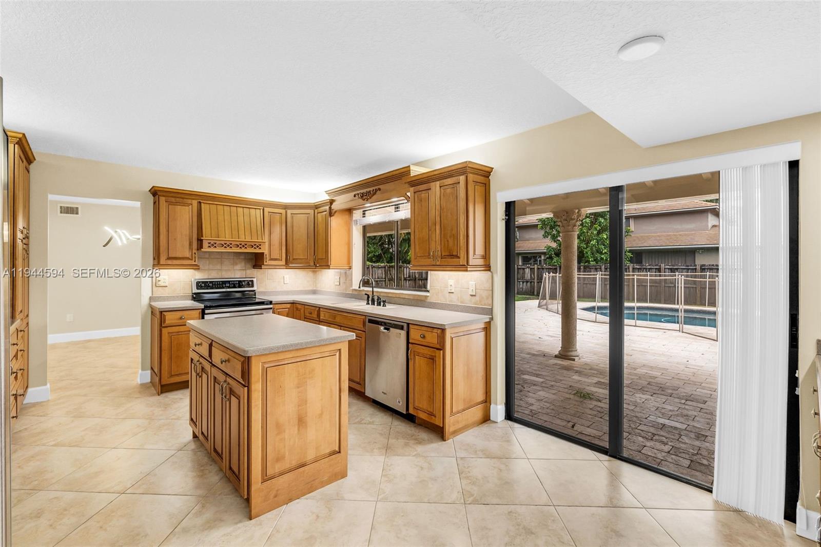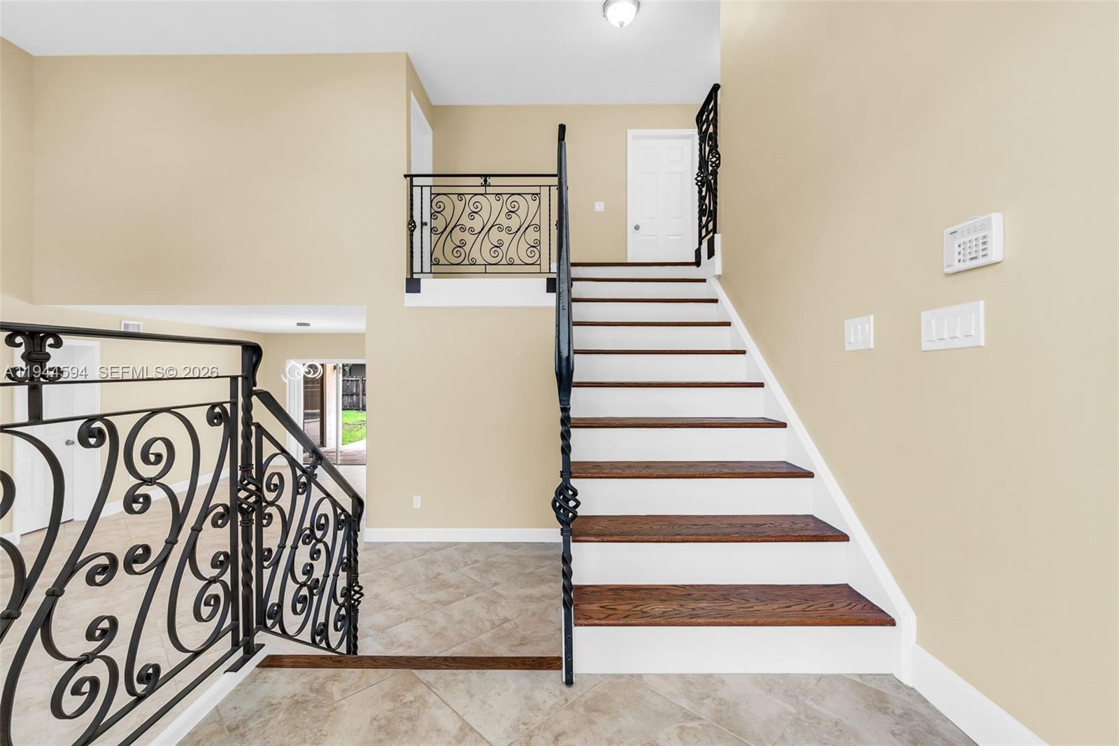 Welcome to this beautiful 5-bedroom, 3.5-bathroom home tucked away in a peaceful cul-de-sac. Featuring vinyl flooring upstairs and tile flooring downstairs, this home offers a stylish, low-maintenance living environment with no carpet. The spacious kitchen showcases beautiful wood cabinetry paired with Corian countertops and opens seamlessly to the generous living and dining areas, making it perfect for entertaining. The first-floor primary suite provides added convenience and privacy, complete with a beautifully tiled bathroom that delivers a spa-like retreat. Step outside to a fully fenced backyard featuring a refreshing in-ground saltwater pool, ideal for relaxing or hosting guests. Located in a highly desirable neighborhood with top-rated schools, this home perfectly blends comfort, charm, and functionality.