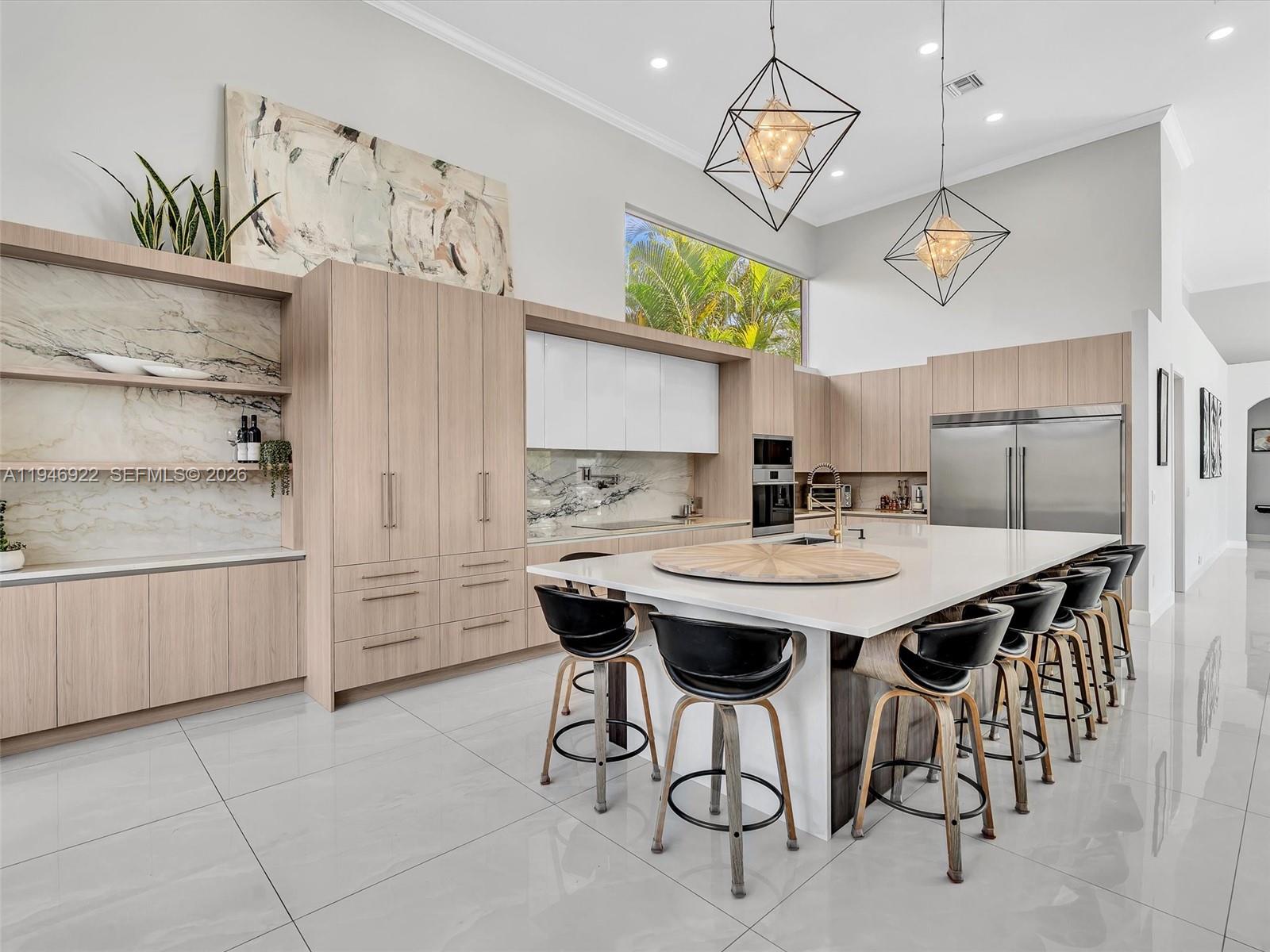Magnificent one-story courtyard waterfront home in the exclusive gated community of Seasons, located in Central Boca Raton. Key features of the property include: Design & Interior: Soaring 16.5" ceilings, abundant natural light, smooth walls and ceilings, large 4x4 porcelain tile flooring. Layout: 3 bedrooms and 3.5 bath in the main house and 1 bedroom and 1 bath in a separate guest house. Kitchen: A fully updated chef's dream kitchen featuring quartzite countertops, a huge island, modern cabinetry, stainless steel appliances, induction cooktop and quartz island. Exterior & Amenities: A 2-car garage, circular driveway, a saltwater pool with LED lights and waterfall, flat tile 2020 roof, and updated AC units ( 2025, 2018, 2018) Community Amenities at Seasons: Seasons is a luxurious 24-hour gated community without equity membership. Residents have access to a newly renovated state-of-the-art fitness center, a heated resort style swimming pool, basketball courts, a spectacular playground, 8 Har-Tru tennis courts, an -n-site tennis pro, and a pro-shop. School Zoning: The community is zoned for A-rated Boca Schools: Calusa, Omni and Spanish River. It is also conveniently located near top private schools: Pine Crest, Saint Andrews, American Heritage and Donna Klein.