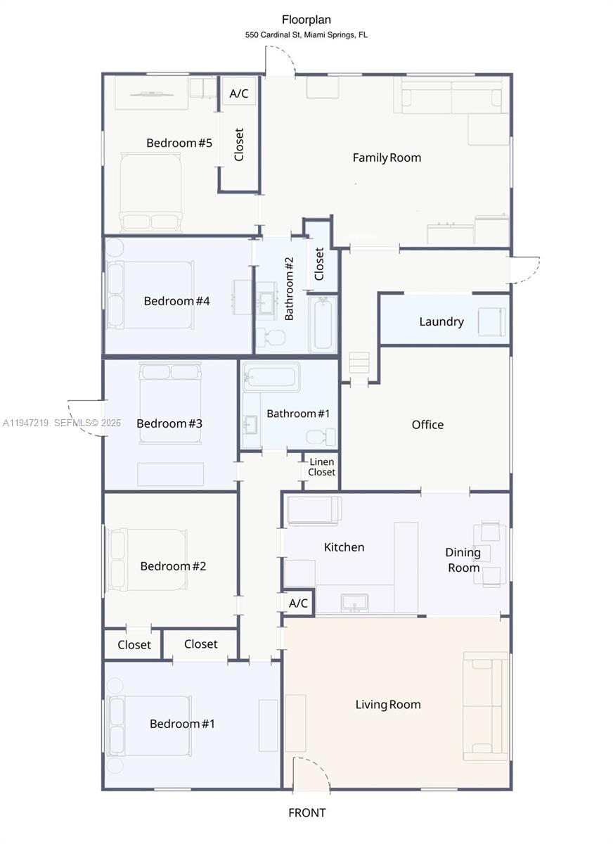 Miami Springs is Miami's BEST KEPT SECRET! A GOLF COURSE family community along picturesque tree-lined streets. This 5 bedroom/2 bath home offers a FLEXIBLE FLOOR PLAN (see photos) for large families or multi-generational families. Currently used as a 3/1 + office and a 2/1 + Living/dining (with separate entrance). This home is situated on a CORNER lot just under 10,000sf surrounded by lush foliage for privacy, plenty of parking, and room to play. Miami Springs is a true HOME TOWN family community with multiple fun-filled events bringing the community together i.e Independence Day parade, fireworks on the golf course, car shows, farmers market,etc. MS Adult Center, MS Youth Community Centers with indoor basketball courts, MS Aquatic Center, tennis/pickleball courts. NO HOA. Excellent schools K-12. Quaint shops and restaurants in the town center are just a walk, bike ride, or golf cart ride away! 5 MINS TO MIA, >10 mins to new FREEDOM STADIUM, mins to SR112/I-95 to downtown/beaches, mins to Palmetto & Turnpike. VACATION RENTAL ALLOWED visit miamisprings-fl.gov for info.