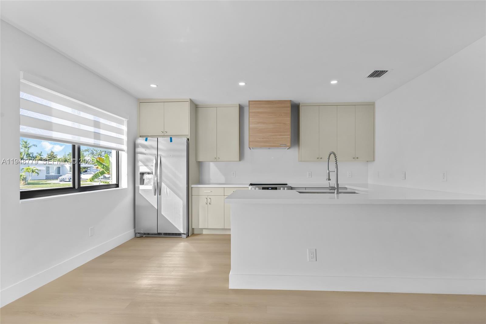 Beautiful 4-bedroom, 3-bathroom modern pool home located on a quiet street in Cutler Bay. This fully renovated, move-in-ready residence features wide-plank flooring, recessed lighting, and abundant natural light throughout. The updated kitchen offers quartz countertops, custom cabinetry, and stainless steel appliances. Spacious bedrooms and renovated bathrooms showcase contemporary finishes and clean design. Sliding glass doors lead to a private backyard oasis with a sparkling pool, expansive patio, lush landscaping, and a tiki hut—perfect for outdoor living year-round. Additional highlights include impact windows and doors and a thoughtfully designed floor plan.