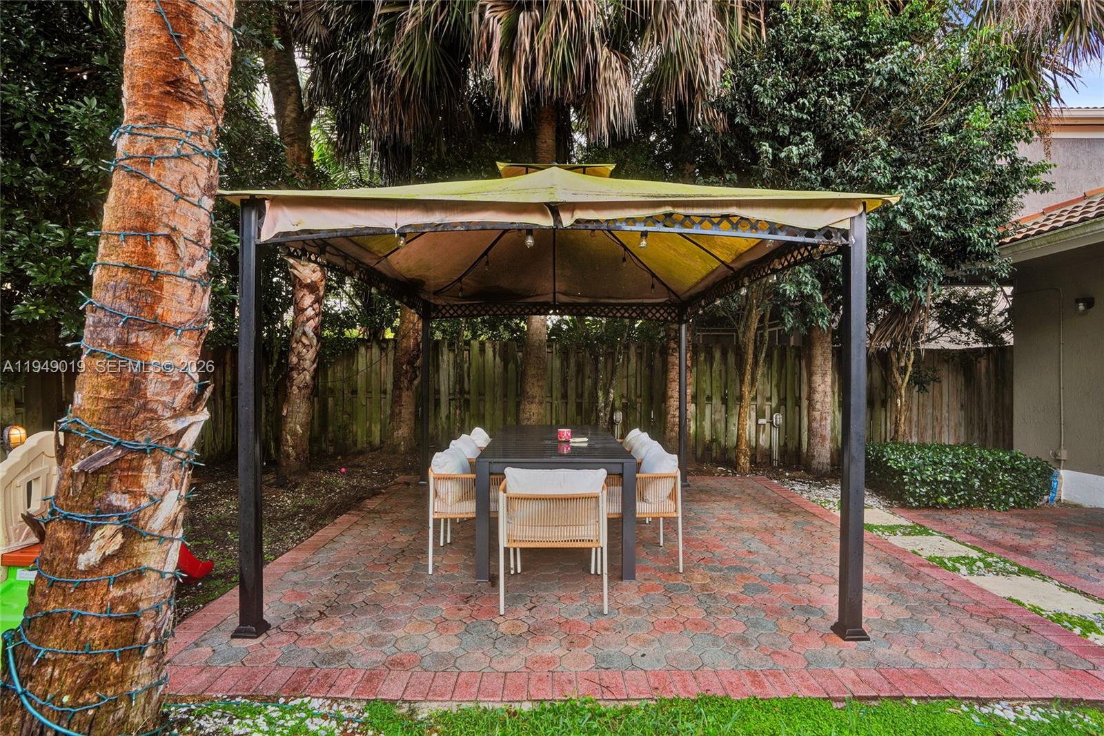 Beautifully updated 3-bedroom, 2-bath home in Palmetto Bay featuring a split floor plan, open living and dining areas, and light oak-style flooring throughout. The kitchen offers quartz countertops, marble backsplash, and stainless steel appliances. The spacious primary suite opens to the backyard, which includes a fenced yard with patio and gazebo—perfect for entertaining. Located in a small, gated, great community known for its active, welcoming feel and festive holiday spirit. Just minutes from US-1, private roads, nearby parks, top-rated schools, and a low quarterly HOA. Easy to show.