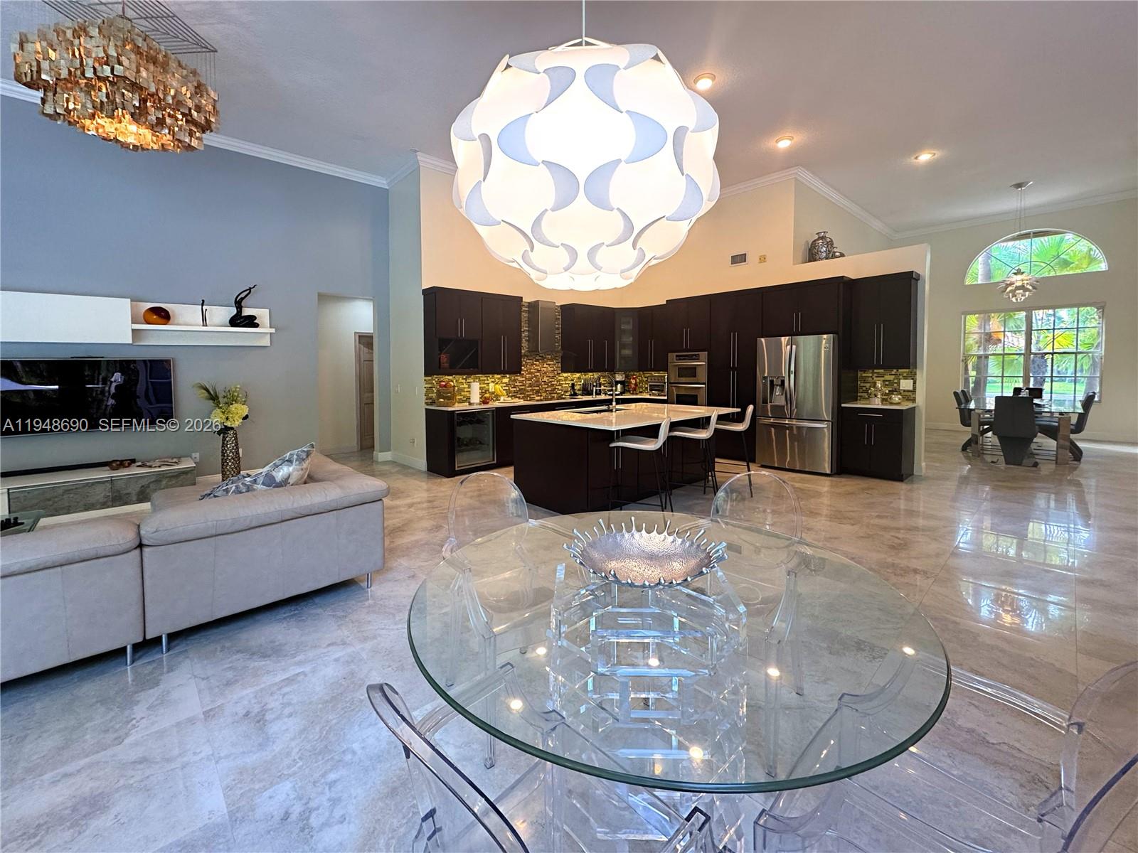 Step into this stunning Weston Gem where elegance meets modern comfort. This remodeled home features a 'Pavilion Style-Open-Concept-Layout', High Ceilings, porcelain floors, and marble & bamboo in the 5bed/5bath. The renewed Cambria Kitchen invites effortless entertaining. Freshly painted throughout in 2025. The gigantic patio extends the LA. Enjoy a resort-style backyard with a fully renovated private pool and spa, new tile, Diamond Brite, and refinished decking/cabana bath/2025. Includes updated garage floor and driveway pavers. Located in one of Weston’s exclusive Palm Island Community, with dual private entrances—Indian Trace & Royal Palm—for access without school traffic. A lifestyle upgraded where details reflect refined taste and exclusiveness. Best schools A+