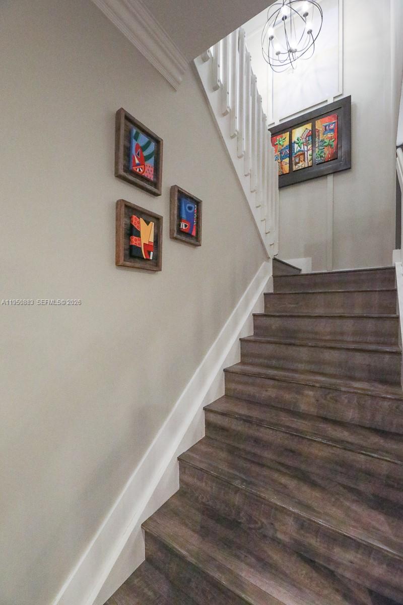 Immaculate and upgraded single family home with private heated pool in highly sought after family friendly neighborhood, Bonterra. Home features 3 bedrooms 2 ½ bathrooms with 1 car garage. Main floor has beautiful wood-like porcelain tiles, an open concept living area, half bathroom, kitchen has custom cabinetry, quartz countertops, and stainless-steel GE appliances with a breakfast nook. Upstairs features 3 spacious bedrooms, 2 full bathrooms and loft area with high-end laminate throughout. The backyard oasis has beautiful, lush landscaping surrounding the private heated pool and a covered, paver patio area that is perfect for entertaining. Home is equipped with complete accordion shutters and Tesla Solar Panel Systems with electric car charging station which significantly reduces the monthly electric bill. No expense was spared in upgrades! Bonterra Community is gated with 24 hour security and community amenities include: resort style saltwater pool, children’s playground, clubhouse with gym and game room. Easy access to I-75 and Florida Turnpike. Low HOA.