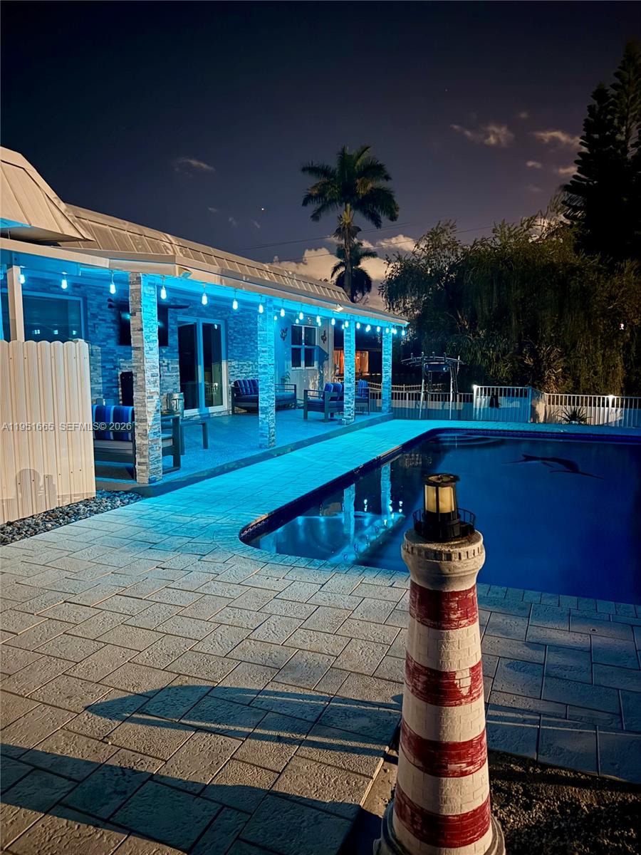 The property is ideal for Airbnb. This single-family home is a standout for boaters and outdoors enthusiasts. Located on a substantial 0.44-acre corner point lot, providing expansive water views and significant privacy. With 2,600 square feet of living space, its futures a bright open-concept layout with high-impact glass throughout and a chef's kitchen with real hickory wood cabinets and granite countertops. Situated on an 80 feet wide canal with ocean access, the property includes a private dock ad boat lift with approximately 145 feet of water frontage. The backyard is a true "resort style" space, featuring a sparkling pool and full outdoor kitchen under a large and authentic tiki hut. Conveniently located, it offers an excellent proximity to major highways like I-95 and Hollywood Beach.