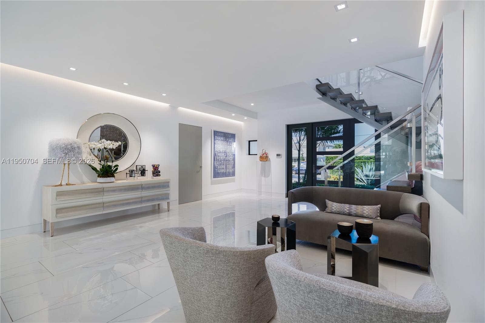 Modern luxury living in security gated Keystone Point with partial open bay views. Built in 2018 this 6 bed, 6.5 bath home has open plan indoor and outdoor living, and living areas bathed in natural light through floor-to-ceiling windows. European kitchen equipped with top-of-the-line Sub-Zero & Wolf appliances, and sliding doors to close off when entertaining. Entertain effortlessly with fully stocked bar area, temperature-controlled wine storage, and telescopic doors that open living areas to the outdoor pool area. Primary suite features a custom walk-in closet and breathtaking sunset bay views. Crestron smart home. 75 feet of water frontage with easy access to the open ocean. Minutes away from Whole Foods, nearby world-class shopping and fine dining in Bal Harbor Mall.