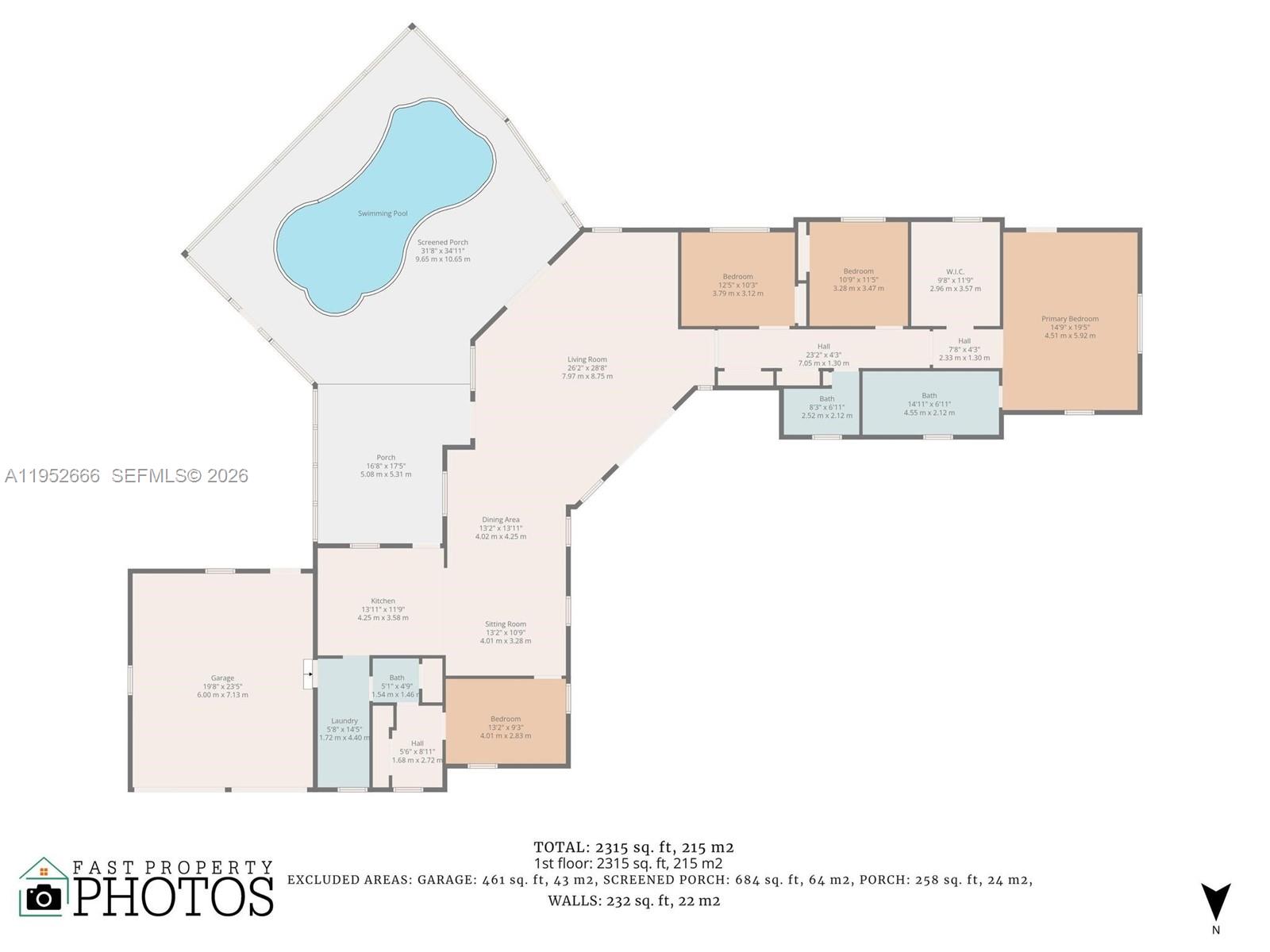 • Жилая площадь: 2553 фут² / 237 м²