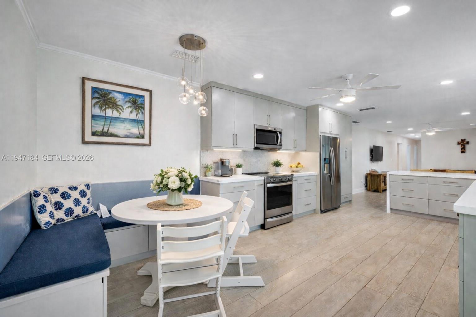 Welcome to this beautifully renovated 4 bedroom, 3 bath home in Mangowood Estates, set beneath a canopy of mature trees on a quiet, tree lined street. A curved driveway and charming front porch create an inviting first impression. Inside, impact windows fill the home with natural light and garden views, highlighting modern finishes and warm, welcoming spaces throughout. The open living and dining areas are ideal for both everyday living and entertaining, with a stylish kitchen that serves as the heart of the home. Step outside to your covered screened in patio with heated pool, offering a private outdoor retreat perfect for relaxing or hosting family and friends year round. Located in one of Palmetto Bay’s most sought after neighborhoods, close to top rated schools, parks, shopping, and an active community with neighborhood events, this home captures the Palmetto Bay lifestyle at its finest: where timeless charm and everyday moments come together to create lasting memories!