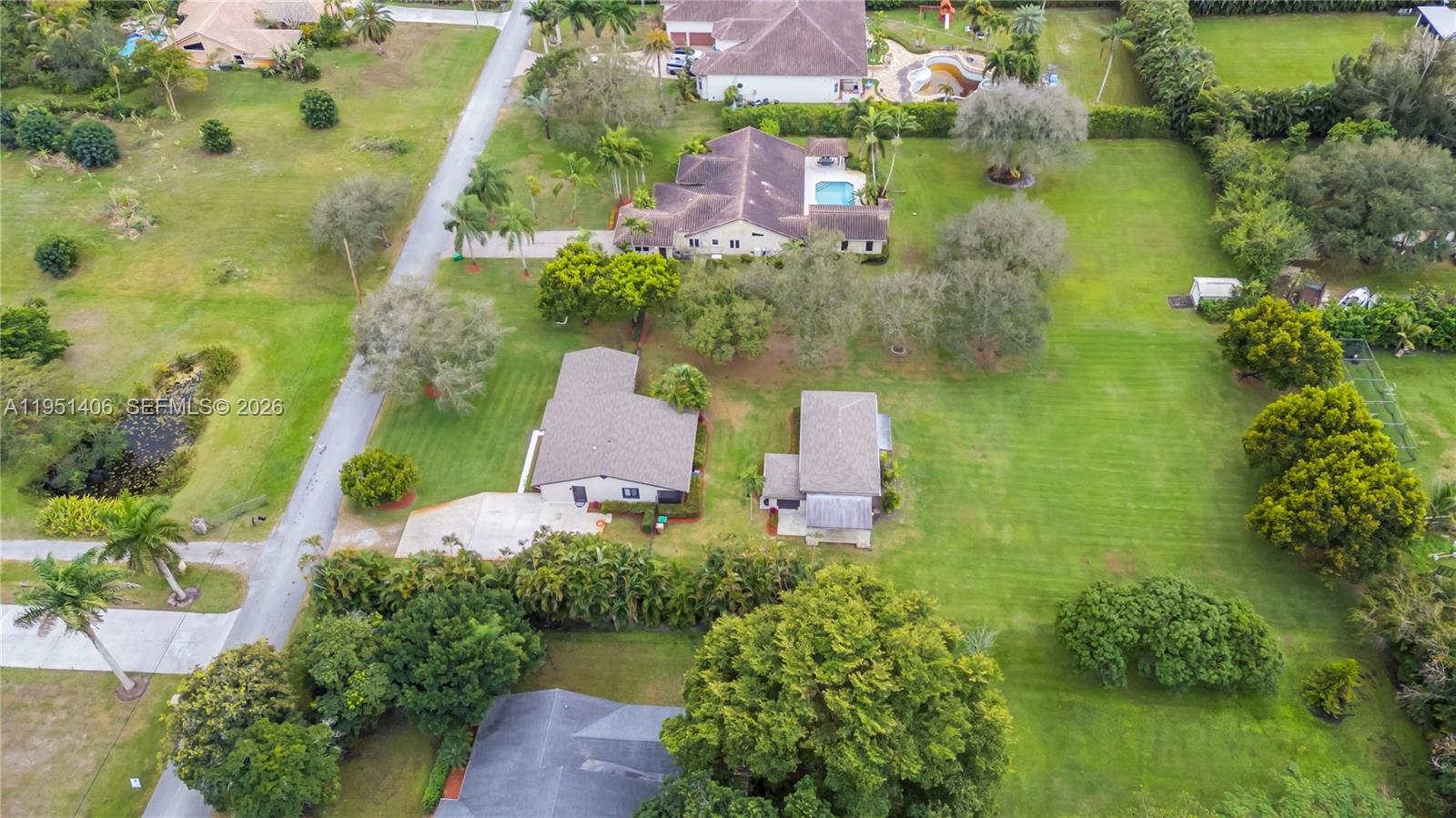 Spacious 2-bedroom, 2-bath ranch-style home set on a sprawling full acre with no HOA, tucked away on a quiet road—truly a rare Davie gem. This property features full hurricane-impact windows and doors, a new roof, and a brand-new A/C for added peace of mind. Freshly painted inside and out, the home showcases volume ceilings, high-hat lighting, and abundant natural light, creating an open, airy feel throughout the generous living and dining areas—ideal for everyday living and entertaining. The kitchen offers warm wood cabinetry, stainless steel appliances, and ample countertop space, perfect for cooking, hosting, and gathering. A separate detached 20 x 40'’ outbuilding with a 15’ ceilings, a mezzanine, and 12 x 15' roll up door. The garage accommodates recreational vehicles, boats, or additional vehicles and provides exceptional versatility for storage, a workshop, or potential conversion into an in-law suite or guest house . Offering privacy, flexibility, and endless potential, this home presents a rare opportunity to enjoy space and freedom on a full acre of land.