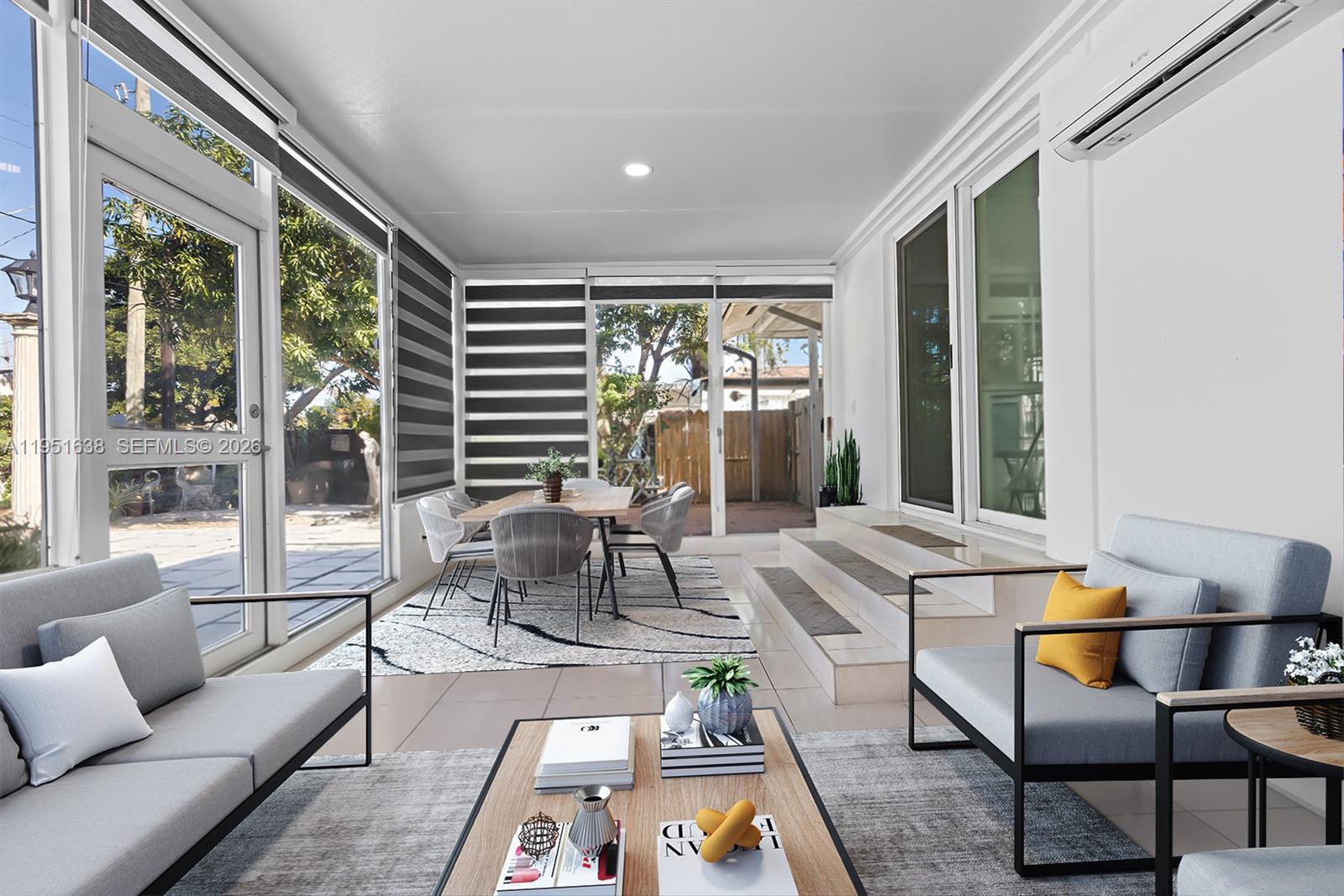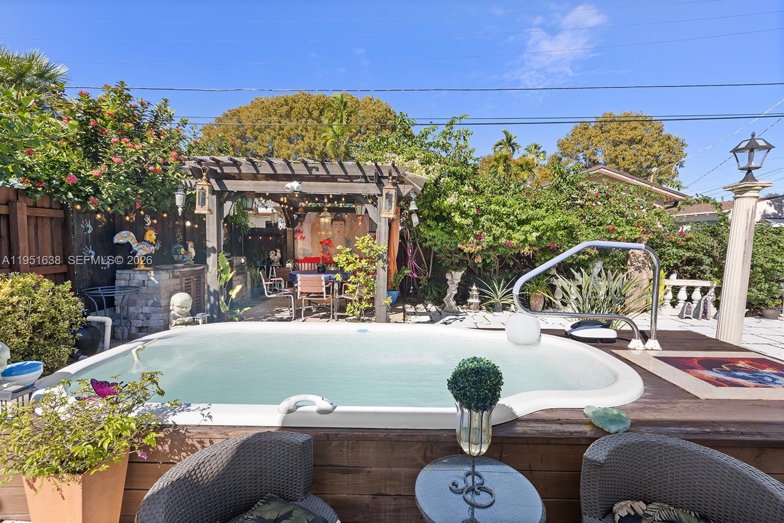 Renovated 3BR/2BA + extra room! in the Coral Gables area, minutes from Brickell and Miami International Airport. Move-in ready with above-ground jacuzzi, covered BBQ gazebo, and spacious paved backyard with mango, avocado, and guava trees, perfect for entertaining. Enclosed under AC Florida room ideal for office, gym, or lounge. Modern kitchen with stainless steel appliances and marble countertops. Impact windows, updated A/C, plumbing, and electrical. Separate laundry room, storage, and ample parking. Close to Miracle Mile, Downtown, shopping, and highways. Mobile home on side of lot may be included in sale.