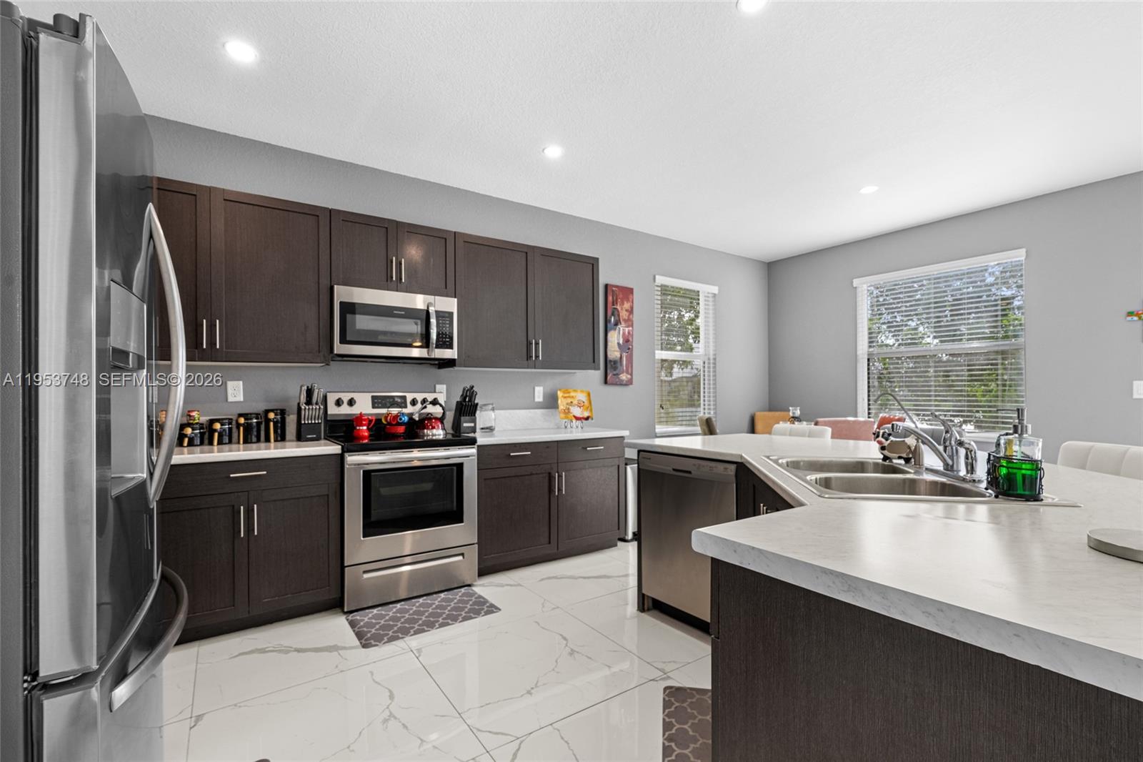Take advantage of the ONCE IN A LIFETIME assumable 2.7% INTEREST RATE! Welcome to this beautifully upgraded 4 Bedroom, 3.5 Bathroom lakefront home located in the desirable Riviera community of Homestead. This spacious residence features large living spaces and bedrooms, upgraded tile flooring, and a well-designed layout ideal for modern living. In addition to the primary suite, the home offers a secondary master bedroom / junior suite with its own private bathroom and walk-in closet, perfect for guests or multi-generational living. Enjoy tranquil lake views from the backyard, complete with upgraded pavers in the backyard ideal for relaxing or entertaining. Additional upgrades include a whole-home water purification system and whole home solar panel system, offering both comfort and energy efficiency. The Riviera is a well-maintained community offering resort-style amenities, including a clubhouse, beach entry style pool and spa, pool side cabanas, fitness center, and recreational areas for walking and parks, in a safe and secure gated community all conveniently located near shopping, dining, schools, health care and major highways. This move-in-ready lakefront home combines space, upgrades, and lifestyle — a must see.