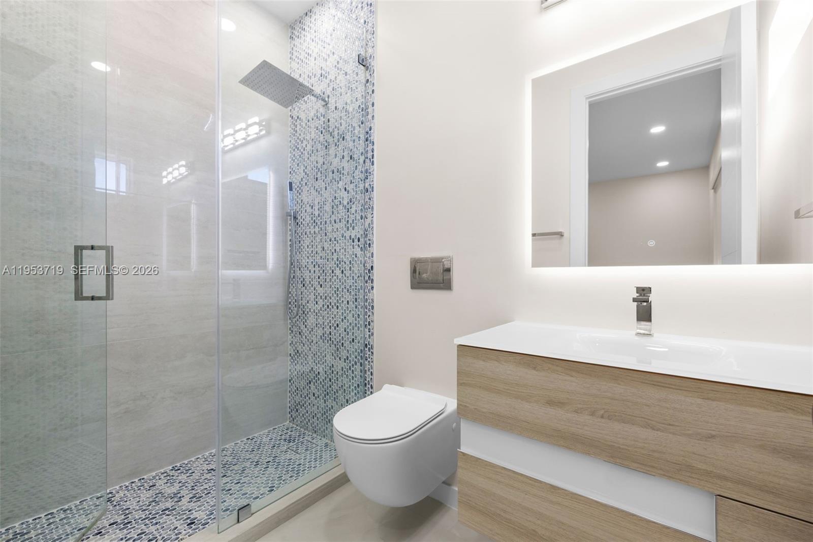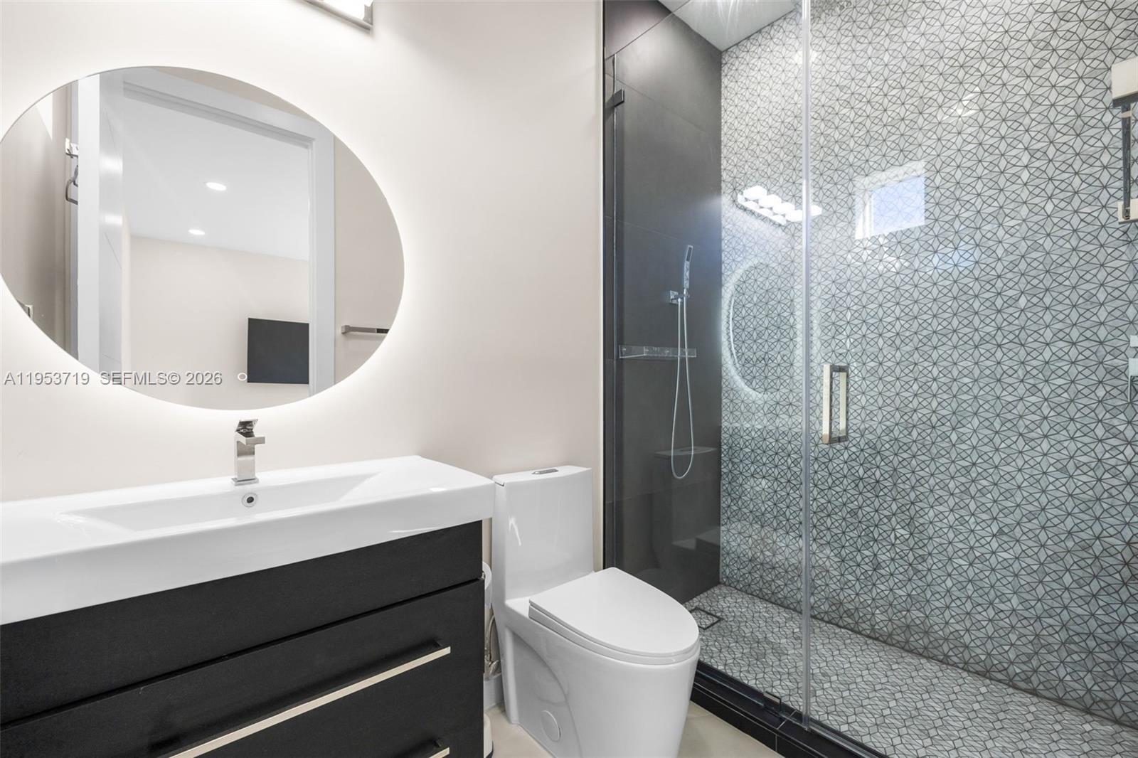 A recently completed modern residence offering refined scale, architectural clarity, and thoughtful design throughout. This home features five en-suite bedrooms plus a powder room, with soaring two-story ceilings anchoring the kitchen, entry, and primary entertaining spaces to create an immediate sense of volume and light. Walls of expansive impact glass frame the outdoors and flood the interiors with natural light, while the open, well-proportioned floor plan is designed for seamless living and entertaining. The kitchen and main living areas flow effortlessly to the exterior, where a glistening pool, lush grassy yard, and private sports court create a true indoor-outdoor lifestyle. The outdoor spaces are thoughtfully layered, featuring a poolside entertaining area with a covered summer kitchen. A rooftop sundeck, complete with a secondary grill, offers generous space to tailor the setting for open-air dining, lounging, and entertaining under the stars. A detached cabana/guest suite offers flexibility for guests, work, or recreation. The property is moments from the bay, with coastal breezes and a tranquil setting that enhances everyday living. Located in one of the most desirable neighborhoods of Palmetto Bay, this is a turnkey modern home defined by scale, light, and quality, ideal for those seeking a refined yet relaxed South Florida lifestyle.