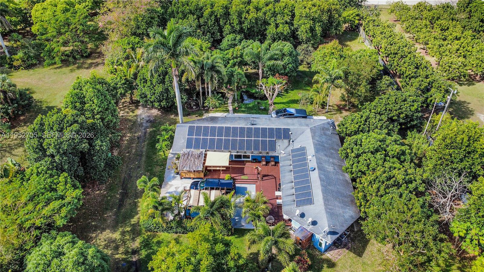 Rare 2.4-Acre Income-Producing Property in Homestead! Endless potential with this multi-use property offering multiple revenue streams, outdoor amenities, and flexibility for residential, rental, or agricultural uses. Whether you’re an investor, short-term rental operator, or looking to live and work on your own land, this Homestead opportunity delivers immediate value with room to grow. The main residence offers 2,600+ sq. ft. of living space and is ready for renovation or reimagining to suit your needs. On the grounds, you'll find a fully livable 1-bed, 1-bath trailer with kitchen and living area—ideal for rental income or on-site employee housing. A separate workshop with electricity offers space for storage, operations, or creative use. Outdoor features include a wooden deck with pergola for entertaining, a jacuzzi hot tub, and tranquil koi pond. The fully fenced, irrigated property includes both shaded and open areas perfect for events, gatherings, or expanded agri-use. Solar panels and an EV charger add modern convenience and efficiency. The owner currently generates income by outsourcing part of the fruit production to a local grower, with opportunity to scale into a full agri-business, nursery, or homestead. The property offers space for additional dwellings, creative landscaping, or continued income-producing ventures. A rare find with built-in income and growth potential—don’t miss it!