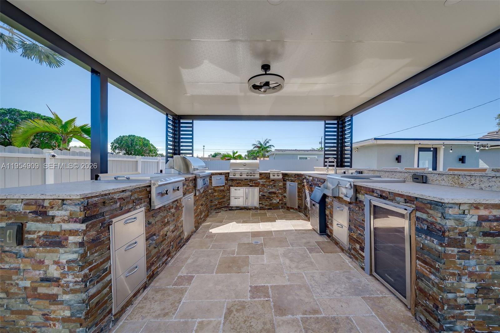 Step into luxury in this impeccably designed four-bedroom, four-bathroom home with 1,625 square feet of living area (New Miami-Dade County Update). Perfectly positioned on an expansive 8,065 square-foot corner lot. Thoughtfully upgraded from top to bottom, this residence offers a seamless blend of elegance, comfort, and modern convenience—ideal for today’s discerning buyer. Enjoy peace of mind with an updated flat tile roof and full impact windows and doors, while high-end designer lighting and premium switches elevate every space inside and out. Sleek porcelain floors lead you through bright, open interiors featuring a stylish wet bar with dual coolers, and a modern kitchen outfitted with striking black stainless steel appliances. All bathrooms have been fully remodeled with sophisticated finishes. Designed for effortless indoor-outdoor living, the expansive terrace opens to a resort-style heated pool, gourmet outdoor kitchen covered by an ultra modern pergola, and a private cabana bath—perfect for entertaining or relaxing year-round. Additional highlights include a gas generator for uninterrupted power, an electric vehicle charging station, and an electric side gate that gives you access to store your RV or boat. This exceptional property delivers elevated living, modern efficiency, and timeless style in one unforgettable package. A MUST SEE!!