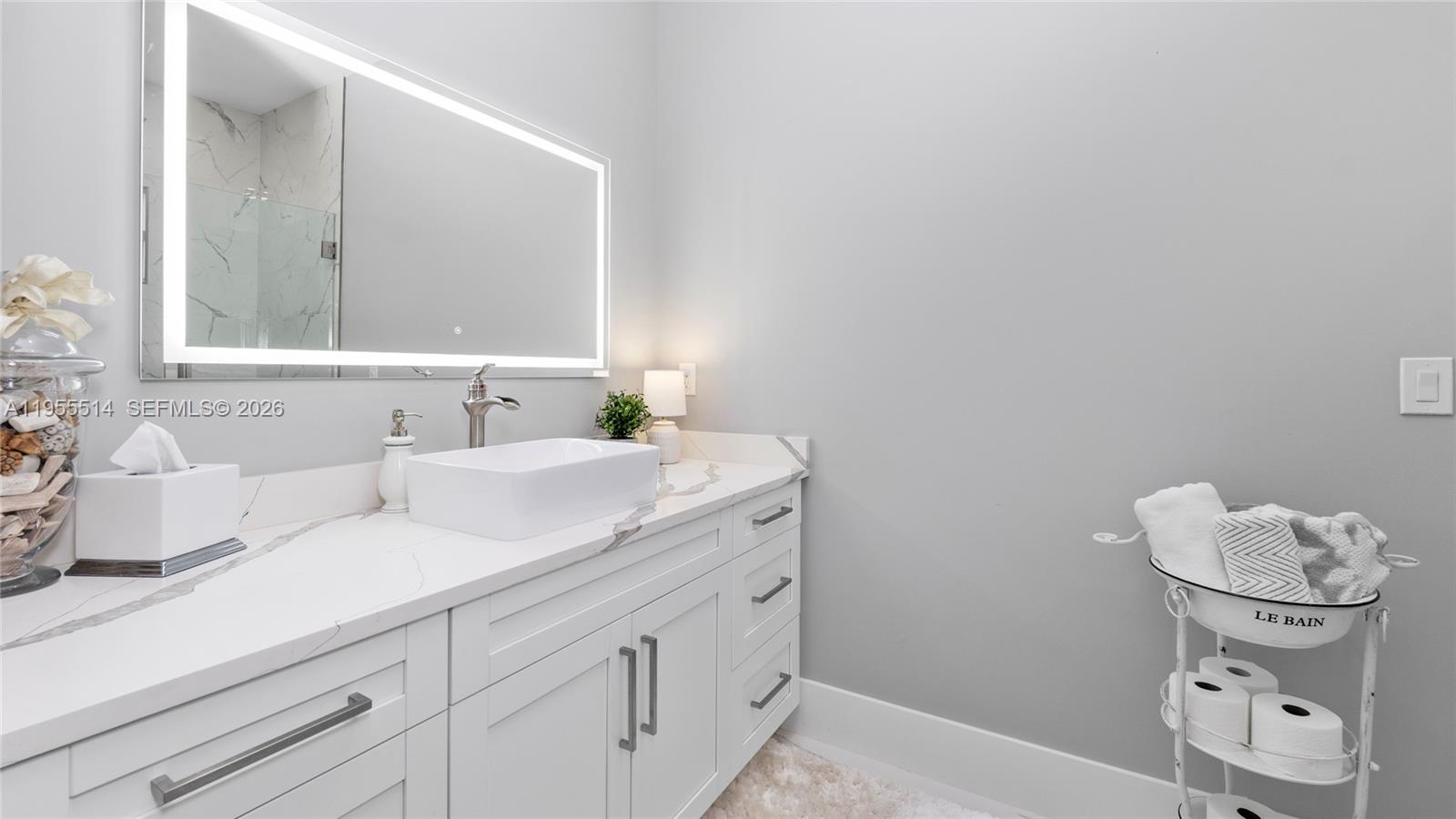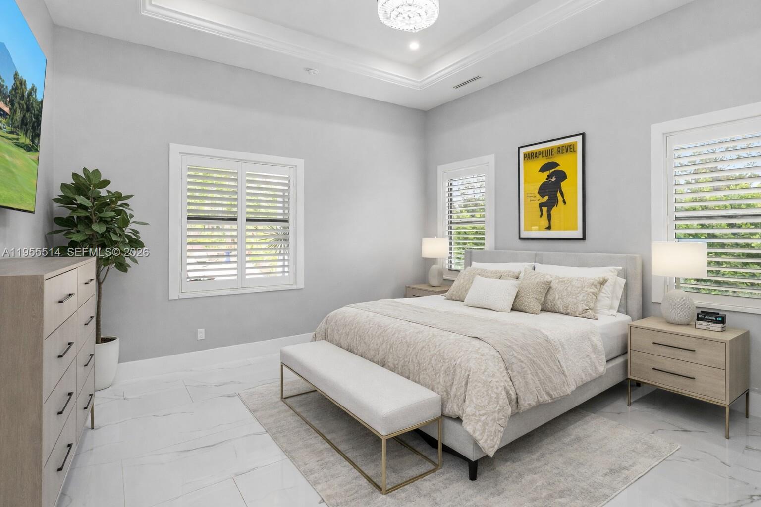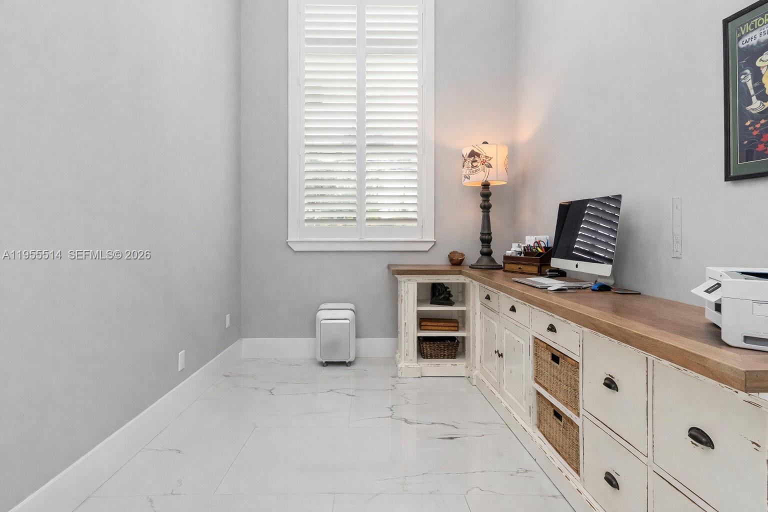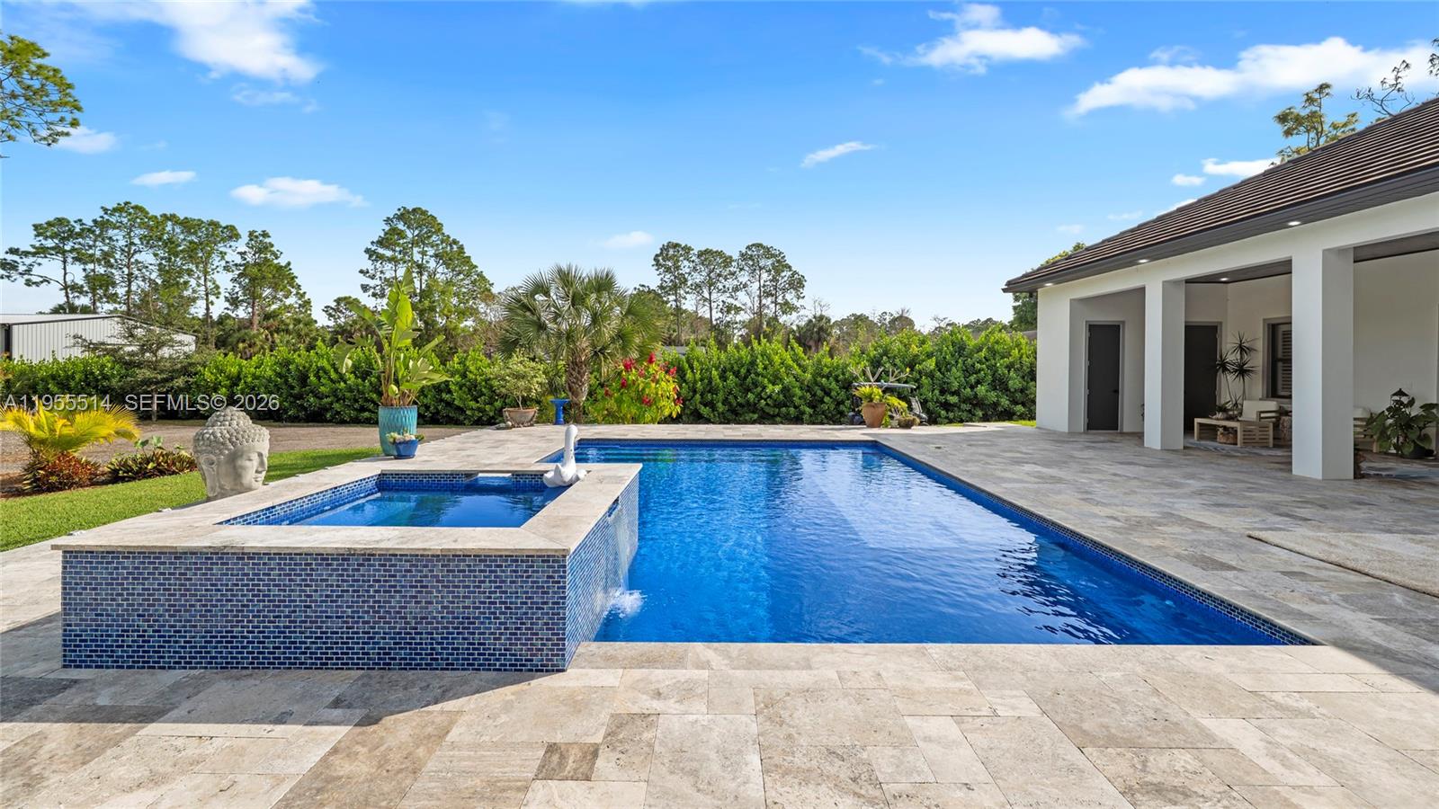 Set on 2.27 acres in Golden Gate Estates with no HOA, this custom-built estate offers privacy, flexibility, and fully usable land. The single-story concrete block home features 4 bedrooms plus a den and 5 bathrooms, including a private guest suite, with an open split-bedroom layout, 11-foot ceilings, 12-foot tray ceilings, 8-foot interior doors, crown molding, and tile flooring. The chef’s kitchen includes 3-inch quartz countertops, a waterfall island, full quartz backsplash, solid wood soft-close cabinetry, and a Thor stainless steel appliance package. The primary suite offers a spa-style bath with a freestanding soaking tub, oversized walk-in shower, Calacatta quartz finishes, and dual vanities. Outdoor living features a screened lanai with tongue-and-groove ceilings, outdoor kitchen, half bath, 60+ LED soffit lights, and a resort-style pool with travertine deck and professional landscaping. A standout feature is the detached 40’ x 62’ air-conditioned concrete block garage with two 12’ x 14’ hurricane-rated doors and covered RV/boat parking, fully permitted with separate rear driveway access. Additional features include impact windows and doors, two Trane A/C systems with UV air purification, whole-house reverse osmosis, tankless water heater, Cat6 wiring, electric gated entry, full perimeter fencing, horses permitted, and room for future structures.