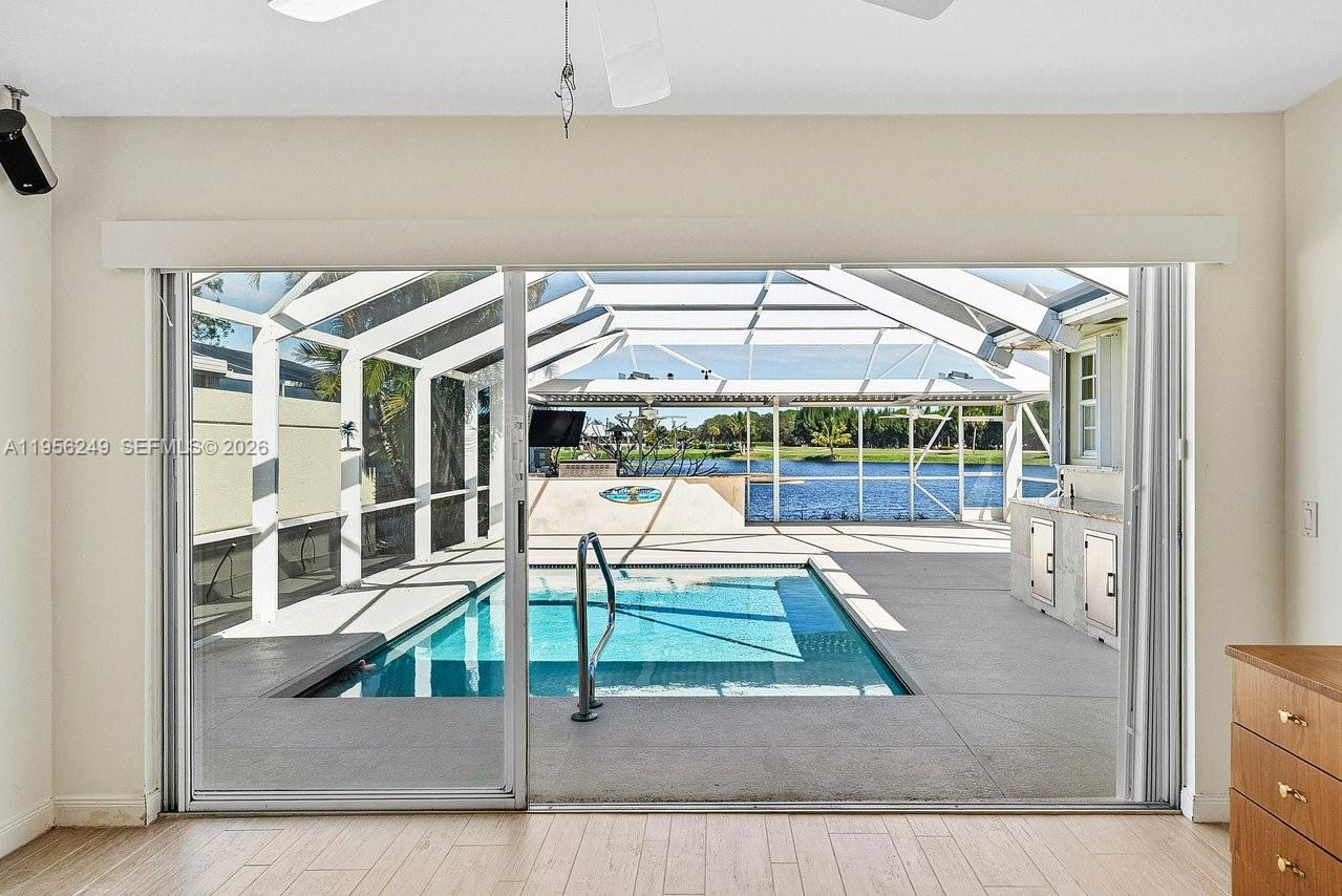 Welcome to your South Florida retreat in the desirable Greenbrier community of Jupiter! This beautiful 2-bedroom, 2-bath townhouse blends comfort, style, and the best of Florida living. Illuminated walkways lead you to a spacious extended patio and pool deck, complete with a custom outdoor kitchen featuring granite countertops, stainless appliances and grill, ample storage, a weatherproof flatscreen TV, and an automated Arcadia louvered roofing system for adjustable sun or shade. Enjoy your heated pool year-round while taking in the serene lake and golf course views. The community offers fantastic amenities including a pool, tennis and pickleball courts. Golfing available just moments from your door. Located close to top-rated A+ schools, incredible restaurants, shopping, nature trails, and the Atlantic Ocean and beaches, this home combines luxury with convenience. Don’t miss the chance to live where others vacation—schedule your private showing today!