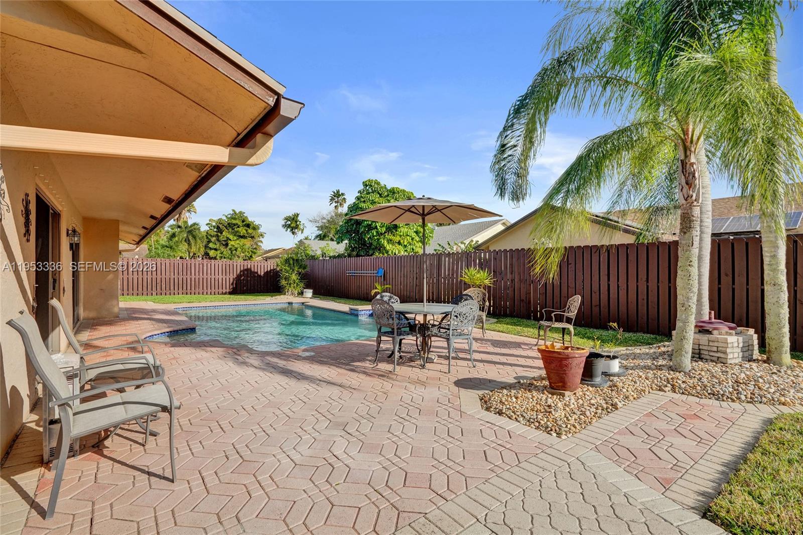 This three-bedroom, two-bath home is a true suburban retreat, nestled within a tranquil neighborhood with no through traffic. The property features meticulous landscaping and a sparkling, private backyard pool creating a serene environment. Strategically located this home provides easy access to major highways, shopping and parks. Find a living area that seamlessly connects a modern kitchen and a bright dining space. Large sliding glass doors invite abundant natural light and provide direct access to the pool deck, The primary bedroom has a closet and an en-suite bath with a shower, while two additional bedrooms offer versatile space. This home exemplifies "pride of ownership". It is as functional as it is beautiful.