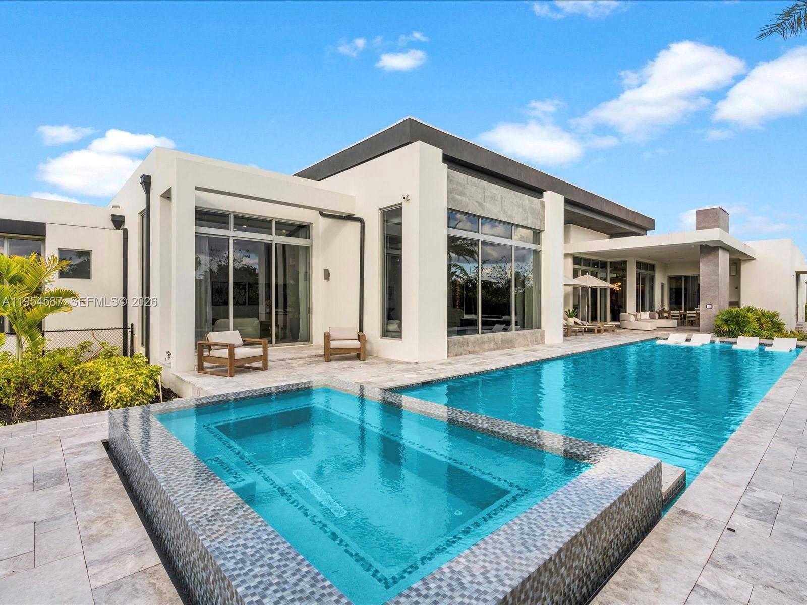 For the buyer who wants it all; privacy, design, and immediate livability! A rare modern estate in Plantation Acres, set within a private enclave of just five custom homes. Designed by acclaimed architect Randall Stofft and enhanced with extensive bespoke upgrades, this residence delivers a refined, truly turnkey living experience. Soaring ceilings, walls of glass, and curated materials define the open living spaces, creating seamless flow between living, dining, and entertaining areas. A statement kitchen, architectural wine wall, and designer bar anchor the home. The primary suite offers a serene retreat with spa-level finishes and generous walk-in closets, while four additional bedrooms are thoughtfully positioned on the opposite wing for privacy. Expansive sliding glass doors fully open to the outdoors, where resort-style living unfolds with a pool and oversized spa, covered terraces, a fireplace, and lush landscaping designed for privacy and relaxation. Ideally positioned near top-rated schools, including American Heritage, premier grocery stores, luxury shopping, dining, and major highways, balancing everyday convenience with long-term value. This is a rare opportunity to step directly into a finished, elevated lifestyle.