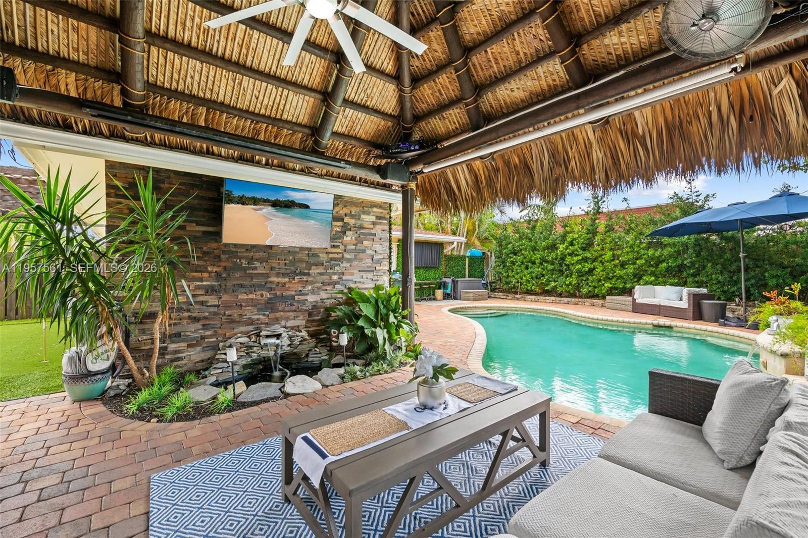 PRIME location of Santa Barbara Estates! This turn-key single-family home is nestled in the heart of the community, just blocks from the beach. Thoughtfully designed and full of charm, it offers a warm, cozy retreat with a completely RENOVATED KITCHEN and bathrooms, upgraded appliances, BRAND NEW A/C. Step outside to a private tropical oasis featuring a lagoon-style pool, tiki hut, furnished outdoor living area, and lush landscaping—PERFECT FOR ENTERTAINING. Additional upgrades include a portable full-house generator and a large shed for storing bikes, kayaks, or oversized items. Conveniently located near shopping, restaurants, Publix, golf courses, and everyday essentials. Move-in ready and a true coastal gem!