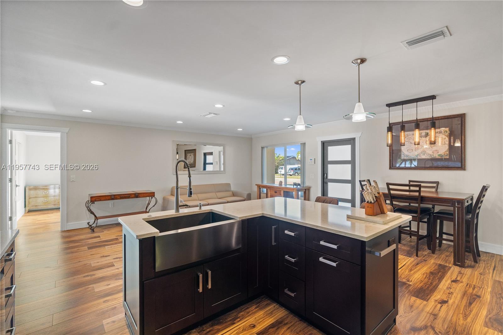 Located on the center of a large lake with spectacular views, This home is loaded with recent upgrades and quality materials, Open floor plan centered around the kitchen, Quartz countertops, Wood shaker cabinets, Under counter lighting, Samsung black stalinless steel appliances, Remodeled baths, Impact windows and doors, Hi-hat lighting, Wood laminate flooring throughout, Crown moldings, All ceiling popcorn removed for a smooth surface finish, Large covered porch with cedar ceiling and wood deck, Exterior painted 2025, 8x8 Vinyl shed, Stamped concrete driveway, RV/boat slab with double gate