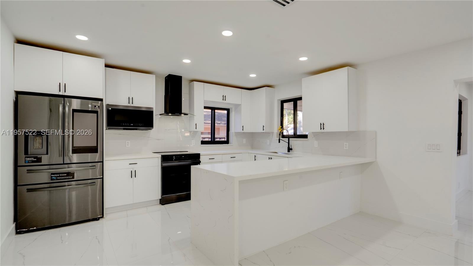 This move-in ready 3BR/2BA home was designed with family living in mind. The split-bedroom layout offers privacy for all, with a spacious primary suite set apart featuring a large bathroom with double sinks & a beautiful modern shower. Enjoy a generous living & dining area + a versatile spare room ideal for a family room, playroom, home office, or study. The modern kitchen showcases brand-new cabinets & stylish countertops. Additional highlights include a large laundry room with washer and dryer hookups. New electric water heater, new sprinkler system, and New impact windows and doors throughout. Relax or entertain in the covered patio with recessed lighting perfect for BBQs and gatherings with family and friends. A wonderful place to call home, just beautiful remodeled with permits. As per the owner, the property has passed the master permit and is ready to close.