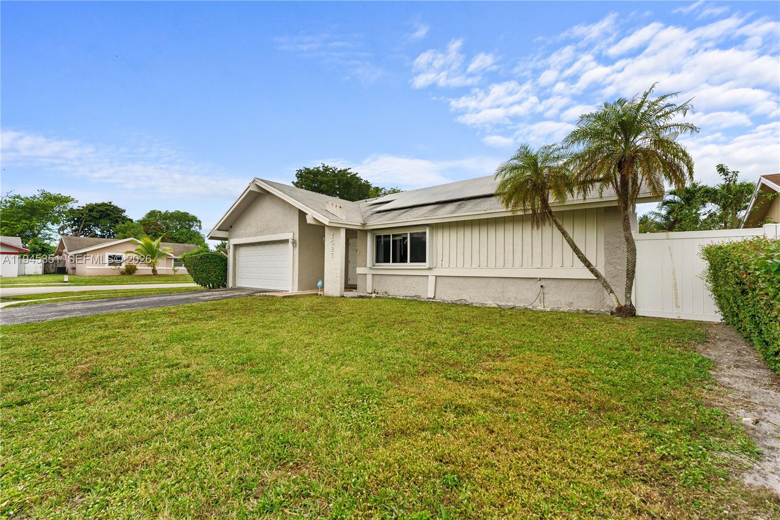 Modern 3-bedroom, 2-bath pool home situated on an oversized corner lot in North Lauderdale. This well-maintained residence offers exceptional indoor and outdoor living with extensive upgrades throughout. Exterior highlights include an S-tile roof, impact windows, hurricane shutters installed approximately four years ago, a newer front door and side garage door, white vinyl gated fencing, and a solar system installed about three years ago. The expansive backyard features a spectacular pool and patio area with a refinished pool floor completed 3–4 years ago, a pool pump replaced 2–3 years ago, and lush landscaping—ideal for entertaining and relaxation. Interior features include neutral tile flooring throughout, a newly remodeled primary bathroom completed approximately seven months ago, updated primary bedroom flooring, and a redesigned primary closet. The guest bathroom, guest bedroom flooring, and closet were remodeled approximately two years ago. Both bathrooms include built-in Bluetooth functionality. The well-appointed kitchen showcases upgraded cabinetry, stainless steel appliances, and new countertops with a center island completed in 2025. Conveniently located near parks, shopping, dining, and major roadways, this move-in-ready home offers modern upgrades, energy efficiency, and comfortable living in a desirable North Lauderdale neighborhood.