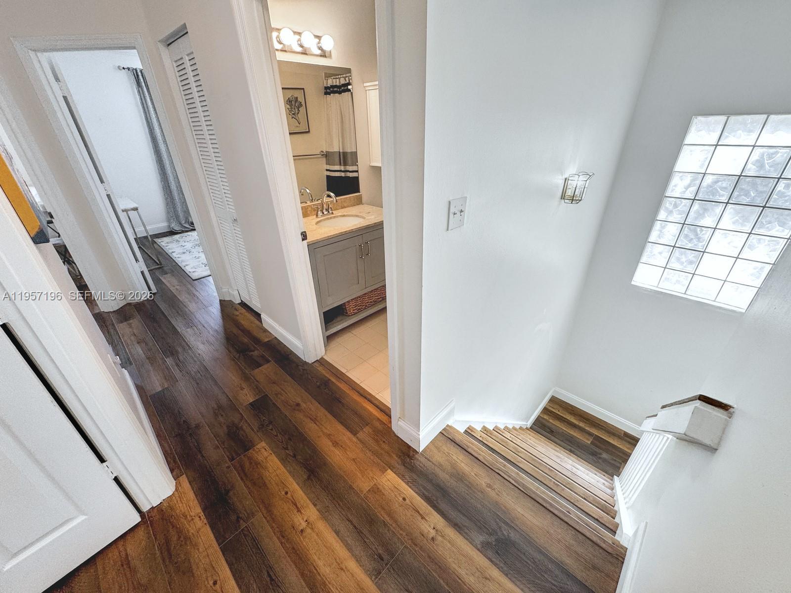 This updated corner lot single family home is located in The Park of Rock Creek community in Cooper City. Home offers a well balanced combination of space, updates and thoughtful design with 3 beds, 2.5 baths a 1 car garage with a long driveway that provides additional parking. The kitchen has been updated and features white cabinetry, stainless steel appliances and beautiful countertops that serve as a focal point of the space. The upper level of the home features wood style flooring that adds warmth. Enter elegant primary suite though double doors, enjoy high ceilings, a reading nook, walk-in closet and spa-like bath with double vanities and a separate tub and shower. The backyard is spacious, private, and designed for relaxation and enjoyment. The beautiful pergola creates a comfortable setting area for entertaining or quiet moments at home. The corner lot location enhances privacy and offers a generous amount of usable outdoor space. Rock creek is a pet friendly community with 2.75 mile jog/walk path, parks, lakes, sports courts, tot playgrounds on tree lined streets. Access to pool & tennis center w small fee. Zoned for desirable cooper city schools. Close to dining, shopping, parks and recreational facilities.