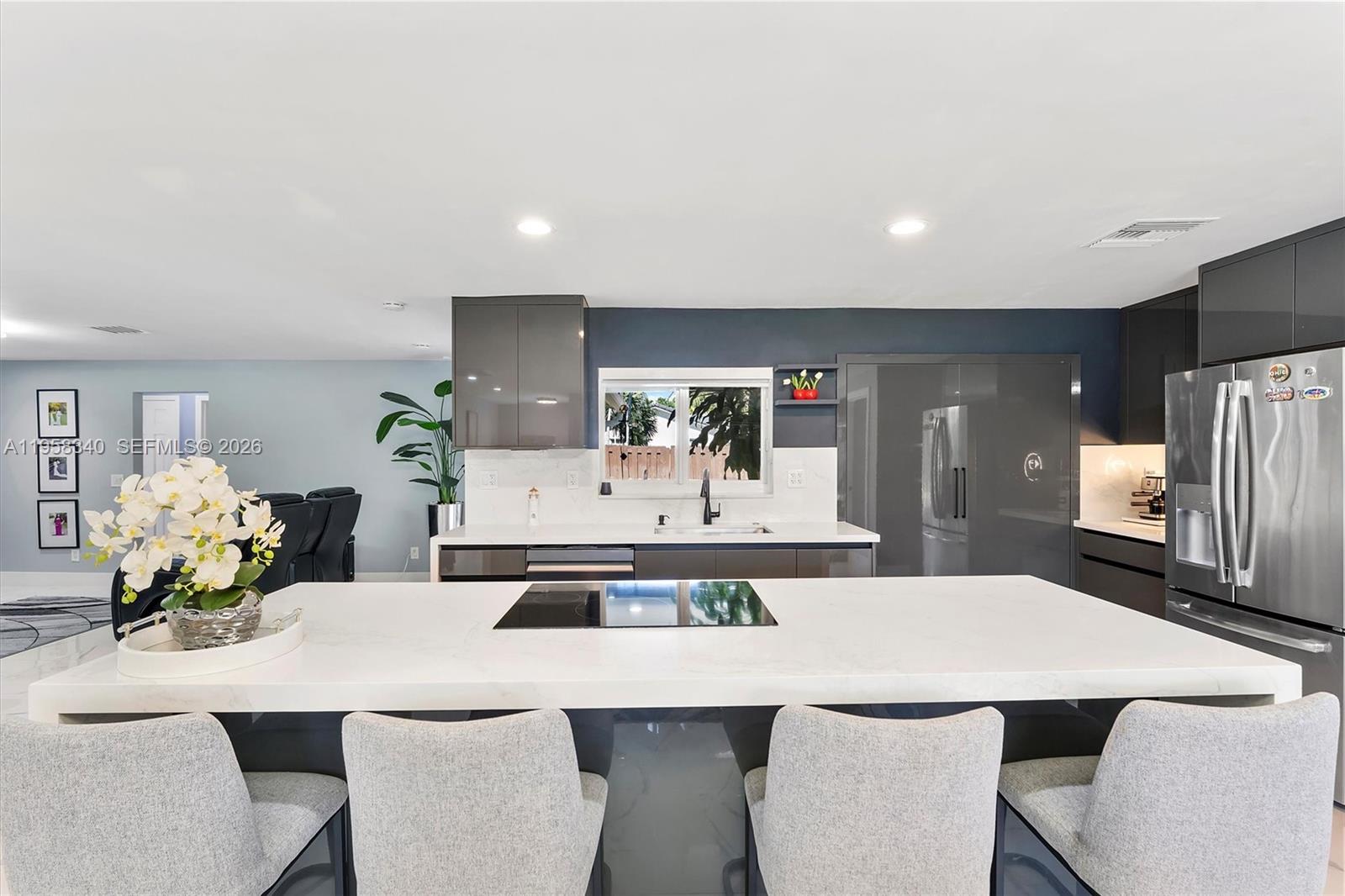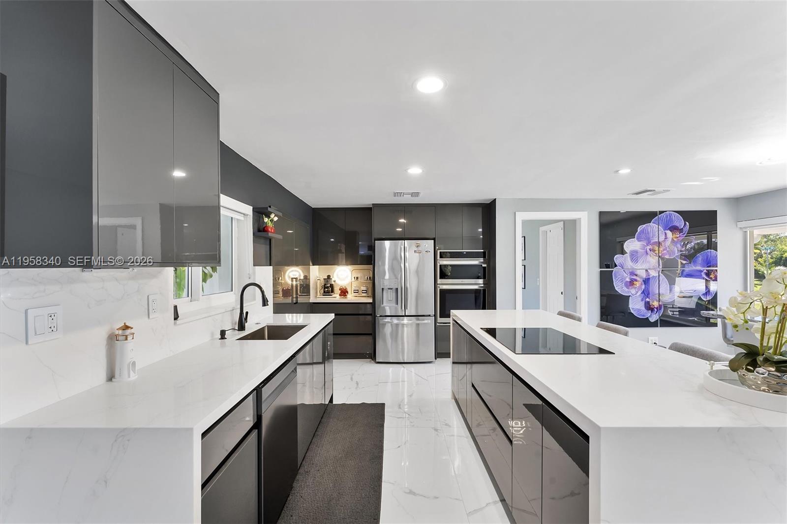 Beautifully renovated home in the heart of Coral Springs, corner lot with no HOA, and move-in ready! This spacious 3-bedroom / 2-bathroom residence offers modern upgrades and flexible living spaces perfect for today’s lifestyle. Inside, enjoy elegant marble pattern flooring, a sleek high gloss open kitchen with quartz countertops, and stainless steel appliances that create a bright, contemporary feel. Both bathrooms have been renovated. Large laundry room with a sink inside the garage. A portion of the 2-car garage has been thoughtfully enclosed to create a private office or flex room, ideal for working from home, a gym, or playroom, while still maintaining storage or parking space. Just outside, you'll find a large backyard with an outdoor kitchen with sink and counter space. Plenty of room to entertain, park boats, RVs, or recreational vehicles, and even build your dream pool. Small creek behind. No HOA restrictions make this property perfect for homeowners who value space and flexibility. Conveniently located near schools, shopping, dining, and major highways. Mortgage savings may be available for buyers of this listing.