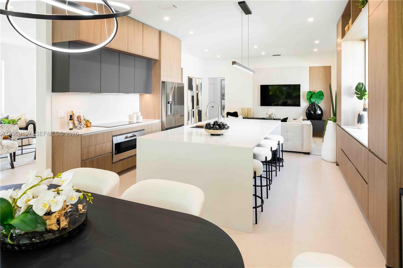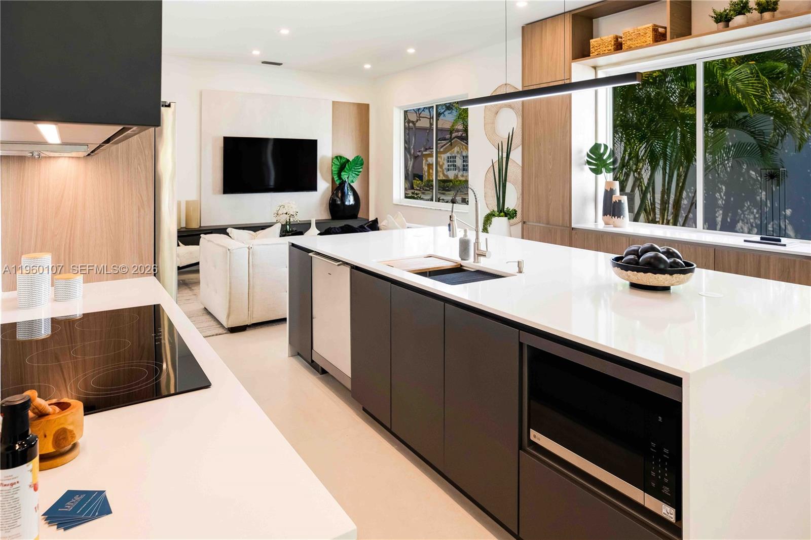 Single-story, fully reimagined residence in Emerald Court at Weston, featuring high ceilings and a cohesive interior program anchored by German cabinetry and architectural millwork throughout, including a complete Häcker cabinetry package. Clean, modern lines are paired with warm, design-forward finishes for a refined yet comfortable living environment. This is a true full-scale renovation. Every interior surface, fixture, and finish has been replaced, with no original elements remaining. Upgrades include new flooring, Italian ceramic tile, fully rebuilt baths, new lighting throughout, interior and exterior paint, and custom built-in millwork in the living and family rooms. The kitchen and baths feature coordinated German cabinetry with a unified modern aesthetic. Bathrooms are designed with a calm, spa-like sensibility, incorporating custom tilework, glass shower and tub enclosures, premium fixtures, and layered lighting. Additional improvements include a new roof (2023) and newly installed impact-rated exterior doors and windows throughout. The property also benefits from a larger yard than many nearby homes, offering generous outdoor space for entertaining or relaxing. Beautifully executed with meticulous attention to detail and exceptional craftsmanship, this turnkey home offers a rare level of finish and design coherence. Emerald Court at Weston offers community amenities including a pool, fitness center, and clubhouse.