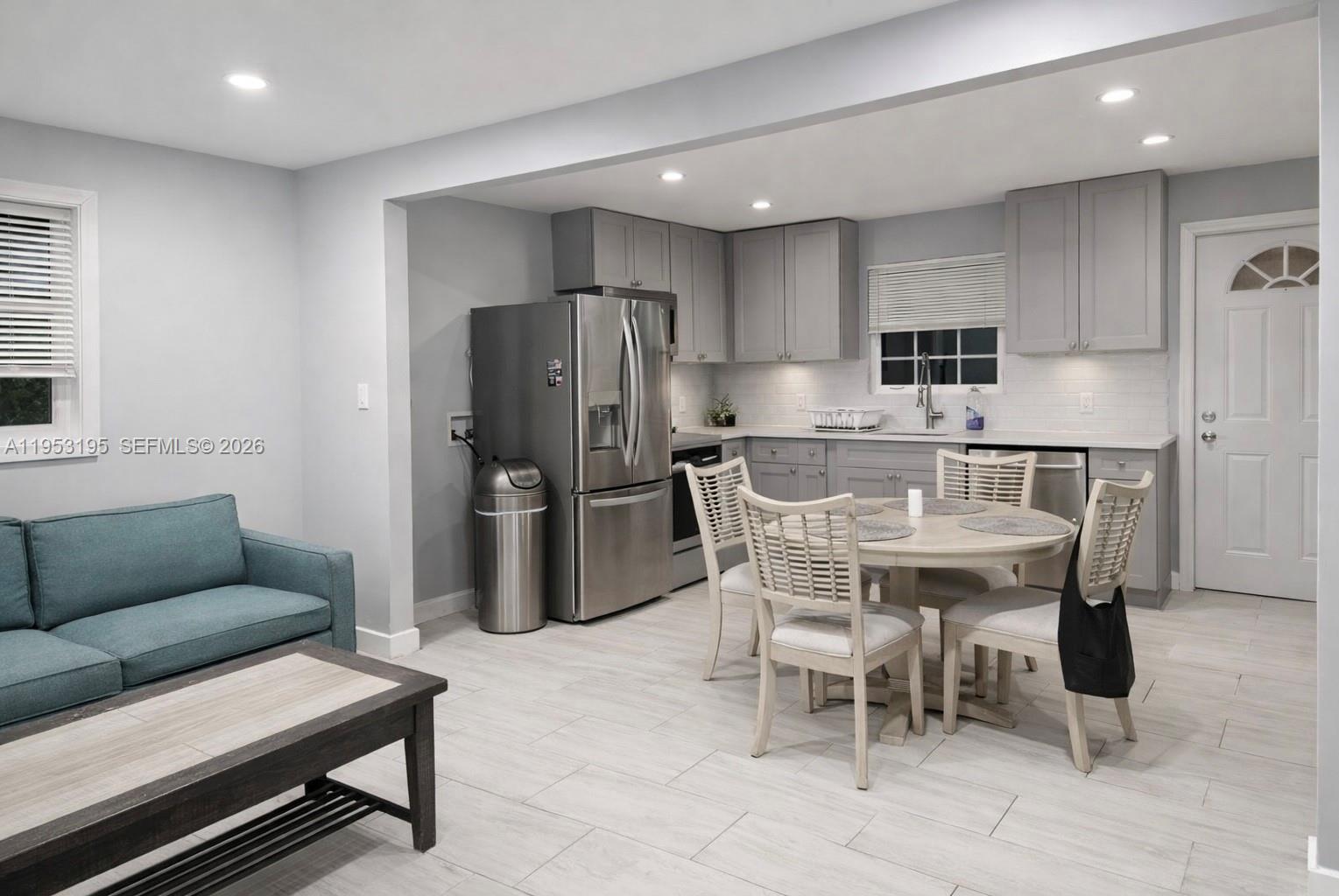 Unique income-producing opportunity on a single lot featuring two separate residences: a 2-bedroom/1-bath single-family home plus a detached 1-bedroom/1-bath home, ideally located in the desirable Tarpon River neighborhood of Fort Lauderdale. The main residence offers a bright, modern transitional feel with impact windows and doors, a new 2025 roof, updated electrical panel, water heater (2017), A/C (2021), washer and dryer, and all appliances replaced in 2023. The updated kitchen features white shaker cabinetry, quartz countertops, stainless steel appliances, recessed lighting, and neutral tile flooring—creating a clean, move-in-ready space. The detached 1/1 with private rear access includes impact windows, a new 2025 flat roof, new electrical panel, tankless water heater, two window A/C units, and a fully updated kitchen, bath, and flooring. Washer/dryer hookup available—ideal for rental income or guest use. Live in one unit while generating income from the other, or rent both while holding for future development potential. With new dry-lot homes in Tarpon River selling for over $2M, this property presents a rare opportunity in a rapidly growing neighborhood. No HOA.