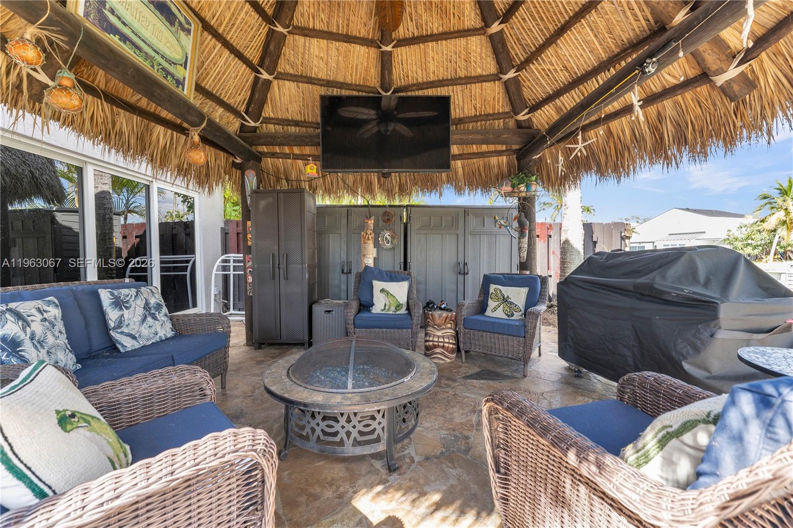 Rare opportunity in the highly sought-after, guard-gated Three Lakes community of West Kendall, prized for its boat & jet ski friendly 100+ acre lake—one of the few of its kind in Kendall. This 3/2 waterfront home sits on an interior canal with direct lake access & features a private wooden dock plus a floating dock for personal watercraft, while the community also offers a dock & boat ramp for shared use. Enjoy resort-style outdoor living with a lagoon-style rock waterfall heated pool, 7-person hot tub, an entertaining Tiki Hut and a low-maintenance putting green. Backyard features deluxe artificial turf creating a clean, easy-care space ideal for relaxing or entertaining. Plumbed ready for a future outdoor 3rd bath, offering added flexibility for outdoor living. Major improvements include a 2025 flat tile roof, New hurricane-impact windows & doors ,reinforced attic roof rafters, hurricane-rated garage door, & newer hot water heater—providing peace of mind & insurance savings. Ideally located near abundant shopping, dining, and everyday conveniences. Interior features travertine tile in main living areas, deluxe blinds, LED lighting, upgraded kitchen with induction range, hi tech refrigerator, whole-house water filtration & reverse osmosis system. HOA includes 24/7 security gates, clubhouse, fitness center, community pool, tennis, pickleball, and lake access. Come experience the waterfront lifestyle that makes Three Lakes one of West Kendall’s most desirable communities.