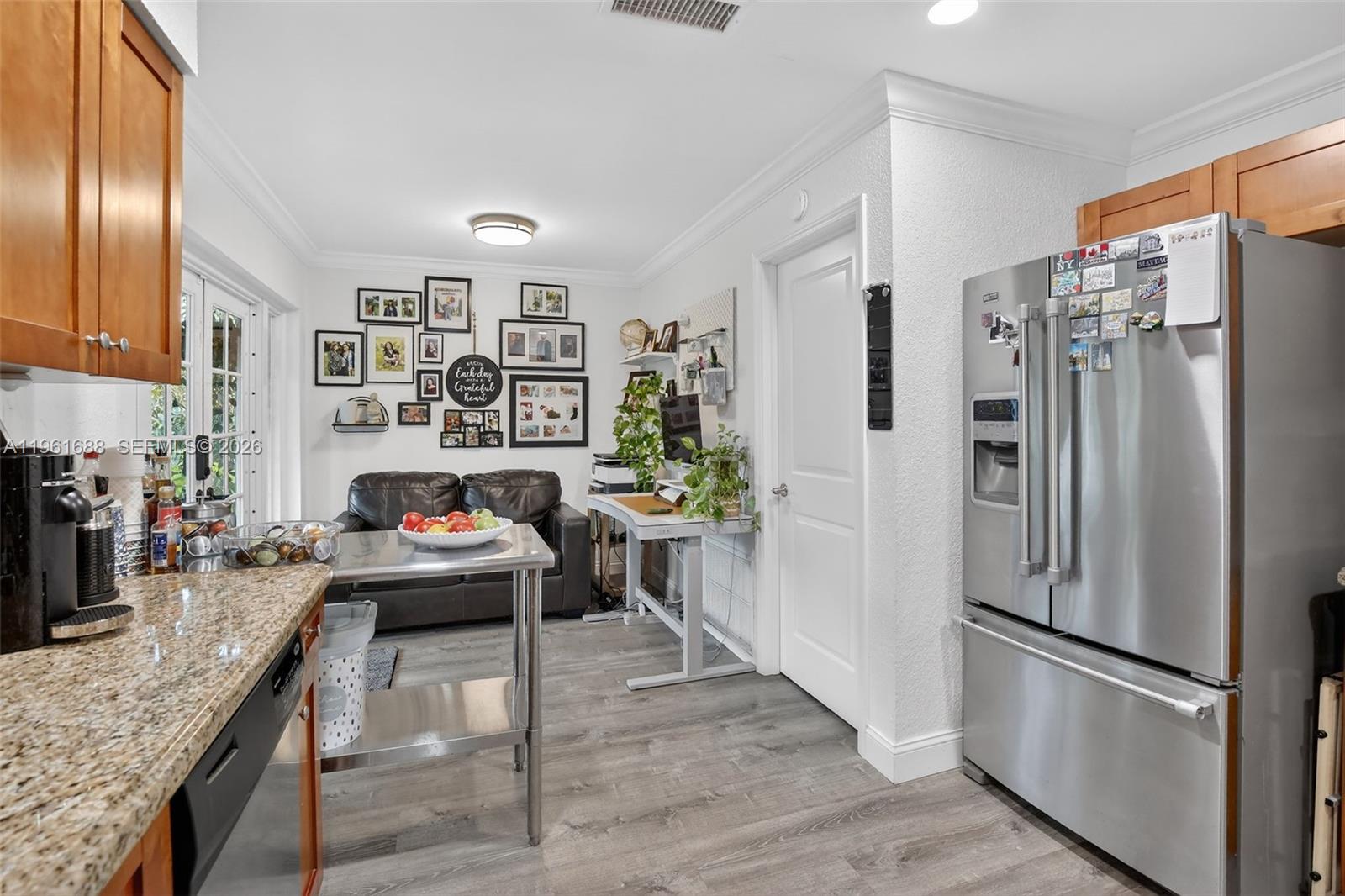 Beautifully updated 3-bedroom, 2-bath residence with a 1-car garage, perfectly situated on an oversized 8,401 sq ft fenced corner lot in Sunrise, West of Hiatus Rd. This move-in-ready home features complete impact glass windows and doors installed in 2024. Roof 2018. A/C 2017. Offering peace of mind and long-term value. Eat-in kitchen showcases wood cabinetry, granite countertops, stainless steel appliances, and a pantry, ideal for everyday living and entertaining. New vinyl flooring flows seamlessly throughout the home, creating a fresh, modern feel. Large stamped concrete driveway installed in 2023 enhances curb appeal and provides ample parking, complemented by a new impact garage door and motor (installed in 2024). The coveted corner lot offers rare access and abundant space for RV or boat parking. No HOA!