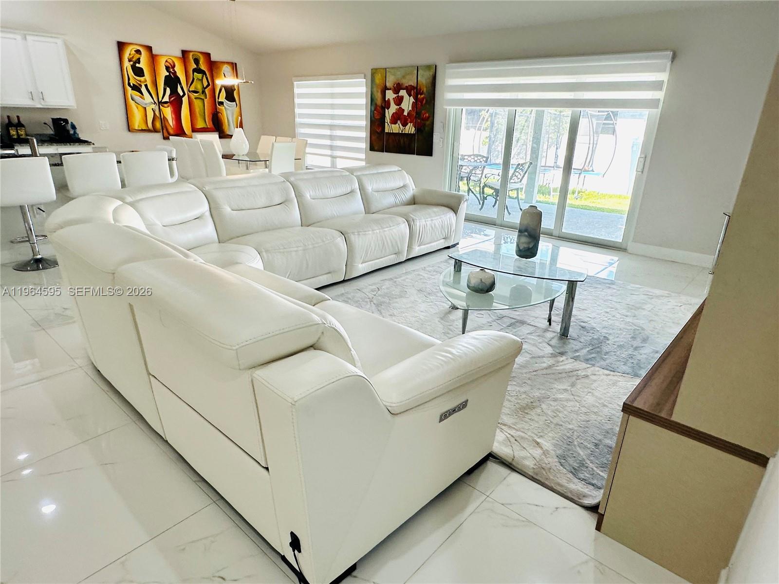 Beautiful 4 beds and 2 baths House with HIGH Elevation, High wind Load, Tons of space 2,557 Sq Ft Air conditioned. This UNIQUE model has a PLUS office space that can be used for an additional bedroom with a built in desk. The open concept with an extra space in this model will take you to a nice and ample kitchen with granite counter tops, stainless appliances and many cabinets. Lot of natural light with many windows. On top of that, the Floor has been replaced for a beautiful with and gray porcelains wall to wall. It more than $14k in UPGRADES. Impact 3 PANNEL sliding door that takes you to a nice Lanai Looking to a great back Yard space. This MODEL IS SPECIAL. NO Carpets . Split Master bedroom with a Tray Ceiling and 2 closets. One of them has been use as a Gym. Dual sinks and separate toilet. Great location with only 3 years old home that looks like new. Close to restaurants and shopping. You can not ask for more! Come and Enjoy the great Space in the Family room that has a great built in space for Your TV station. The ample space in the connection the entrance, living room, family room, dining room and kitchen.... make this house a Fantastic floor Plan. Long driveway can fit additional cars for your convenience. Call today! *** Playground does not convey***