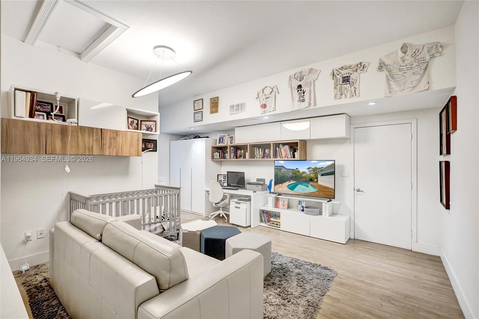 Welcome to one of the most architecturally striking homes in Presidential Estates. Featuring soaring ceilings with exposed beams, expansive open living spaces, and a fully updated kitchen with high-end stainless steel appliances and an oversized island designed for entertaining. The indoor-outdoor flow leads to a private backyard with a wood deck, pool, and jacuzzi, creating the perfect South Florida lifestyle setting. Designer bathrooms, custom finishes,s and abundant natural light throughout. Move-in ready and arguably the best modern option currently available in Presidential. Without question, one of the best modern options in the neighborhood.