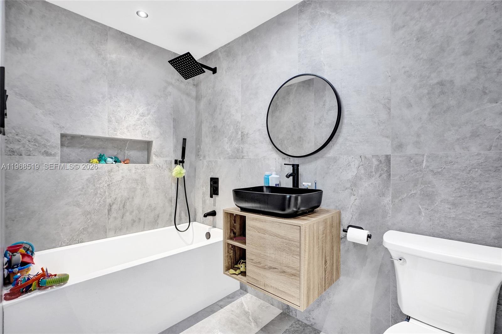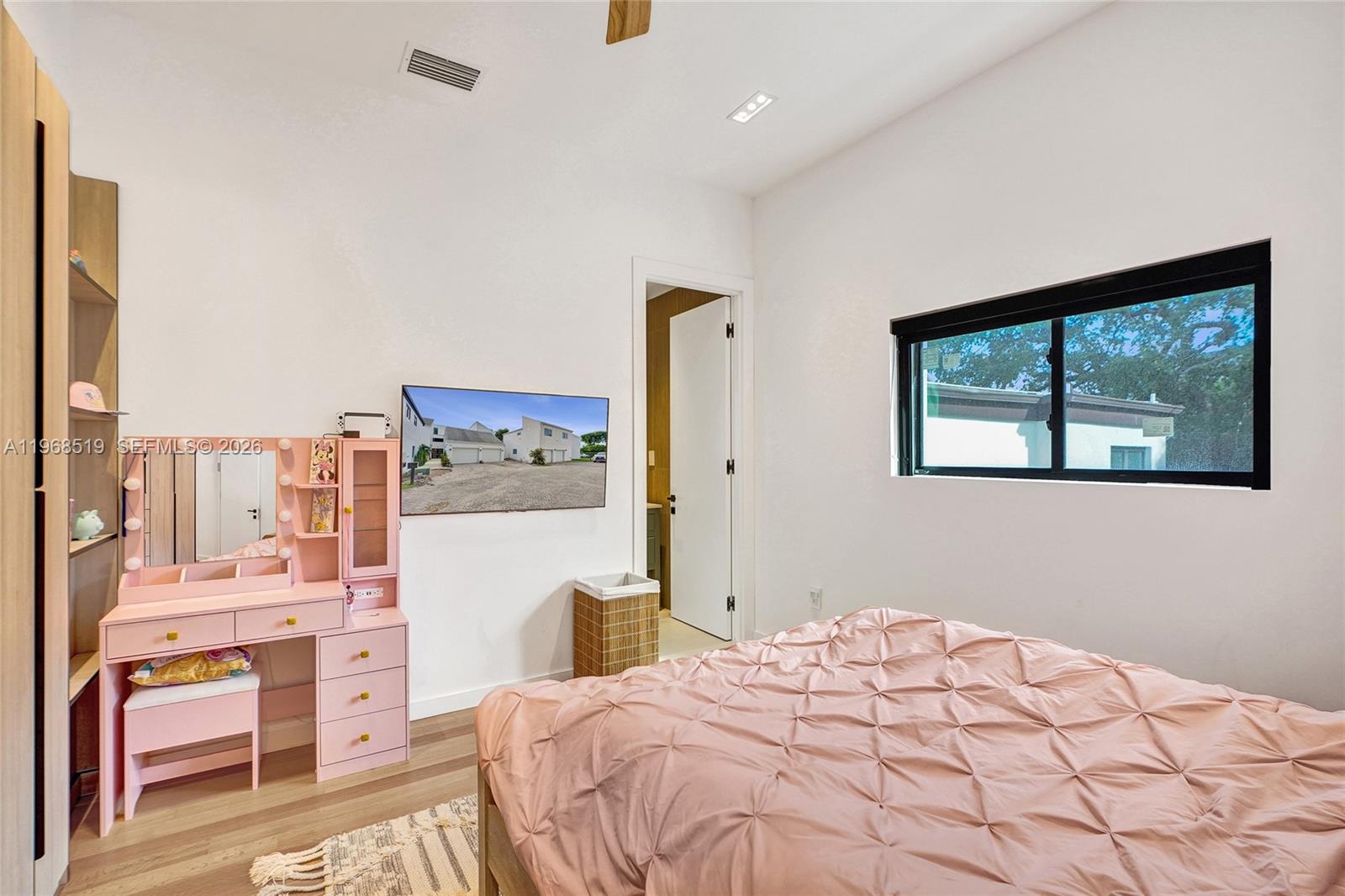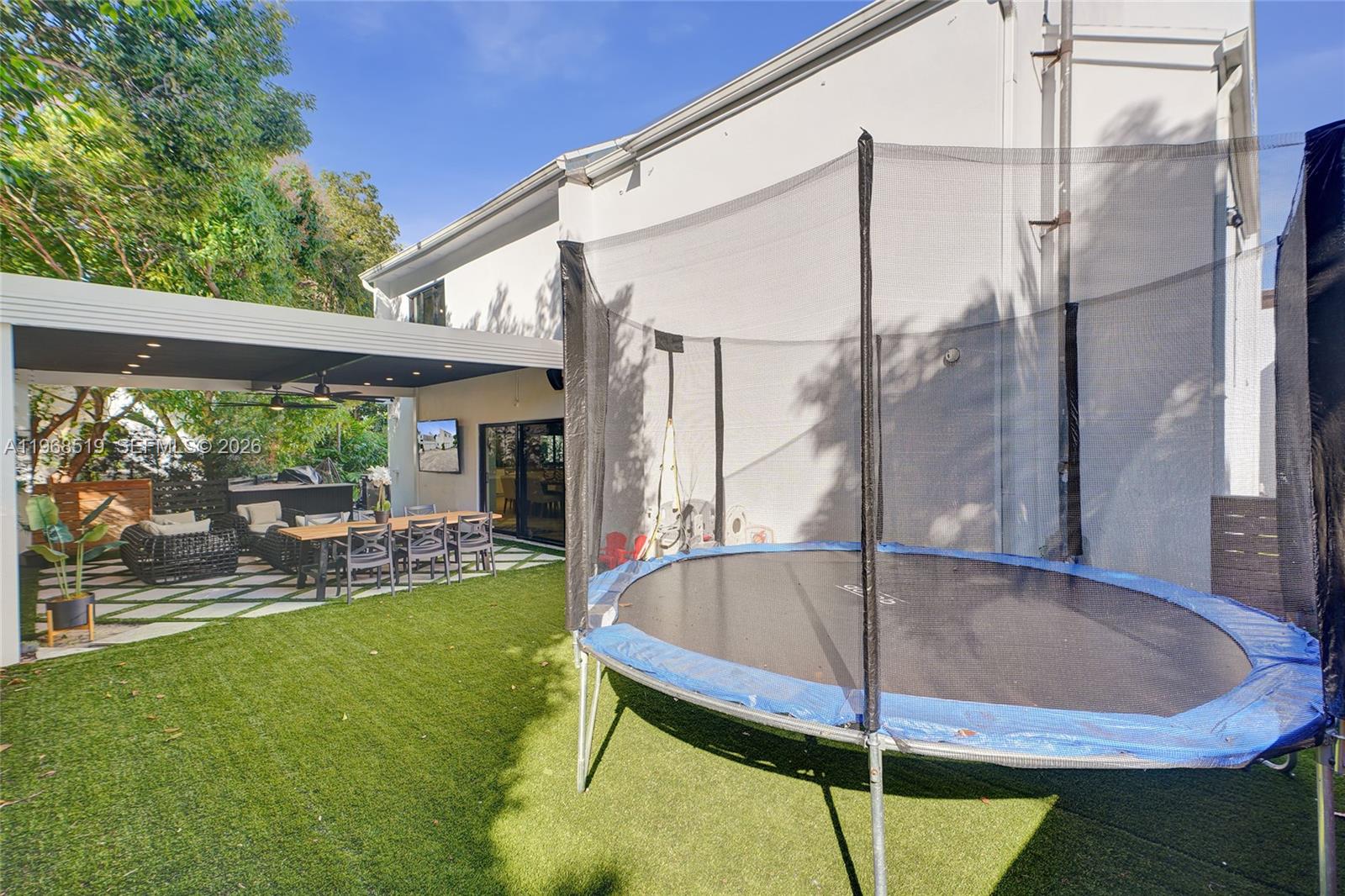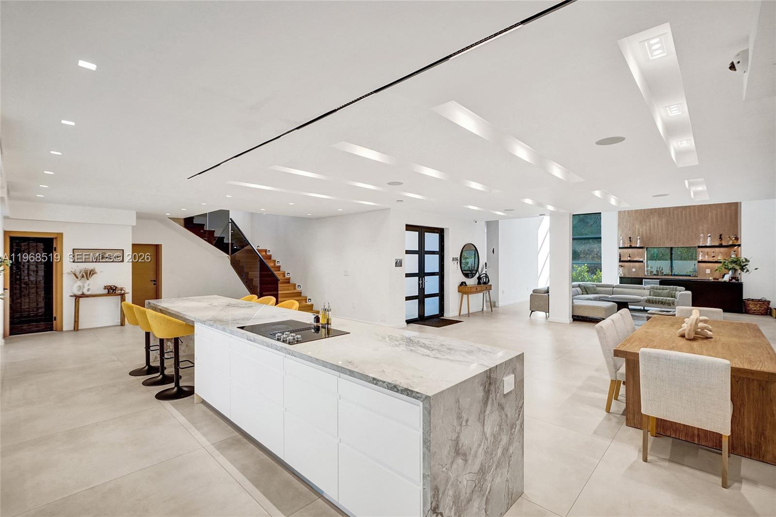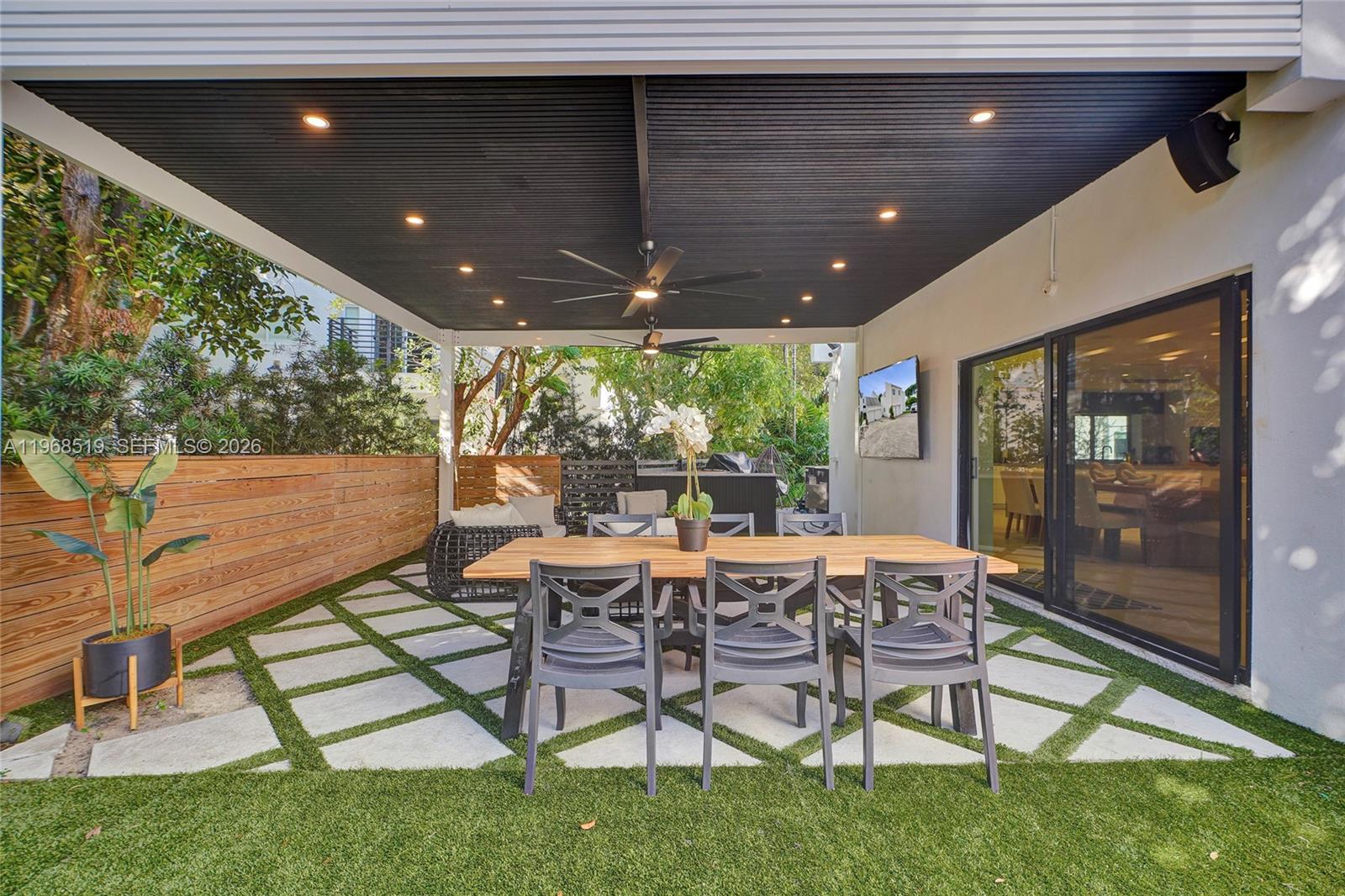 Completely rebuilt , this stunning 6-bedroom, 6.5-bathroom residence offers 4,886 square feet of luxurious living space with every detail thoughtfully upgraded. Everything in the home is 100% new, including the roof (flat and shingle, 2023), insulation, and three A/C units (5, 5, and 3 tons) installed in December 2023. Designed with modern elegance in mind, the home features impact windows and doors, smart toilets, a fully integrated security system on both floors, security cameras, built-in Bose ceiling speakers throughout (including outdoor areas), and a wall-mounted iPad for smart home control. Kids’ bedrooms include Bluetooth-enabled ceiling fans for music. The gourmet kitchen showcases quartz countertops, LED-upgraded cabinetry with touch features, and a ductless hood. The open-concept primary suite seamlessly connects to a spa-style bathroom with smokey grey glass shower for added privacy. Upstairs, you’ll find stackable LG laundry units for convenience. Outdoors, enjoy a 20x20 pergola (2025), a fully equipped outdoor kitchen with BBQ grill, sink, ice machine, and refrigerator, plus new wood fencing and irrigation system. Landscaping is maintained by the community, which also offers a community pool. Additional highlights include a 2-car garage, driveway parking for two more vehicles, and ample guest parking.
