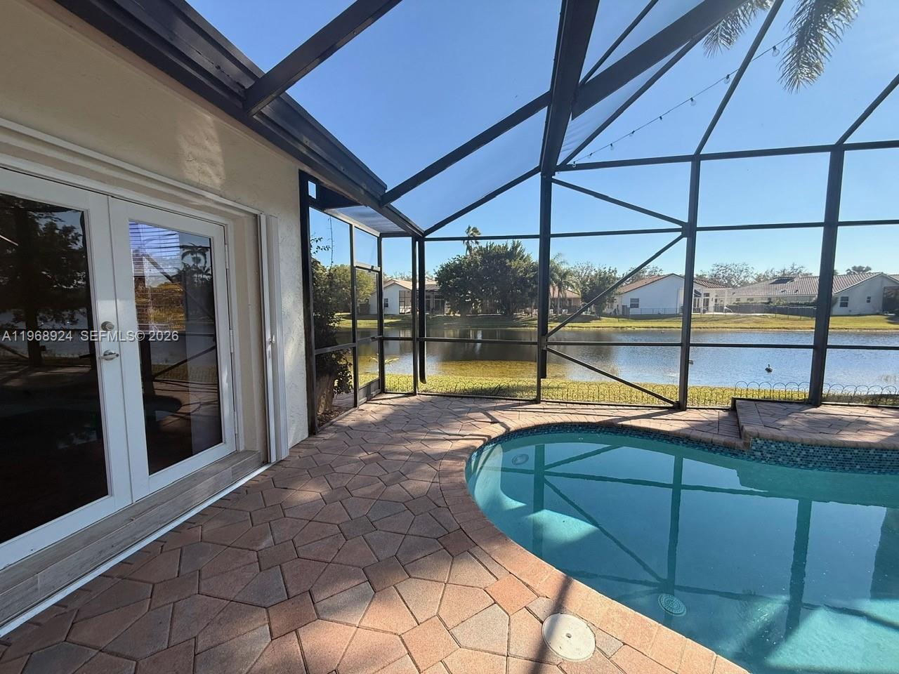Beautiful home in Weston Hills CC featuring 5 bedrooms and 3 bathrooms. The bright and spacious property has been recently painted and offers a new ROOF installed in 2021. Enjoy a comfortable layout with accordion shutters throughout. Step outside to a screened patio and a private pool overlooking the canal, creating a peaceful and relaxing water view.