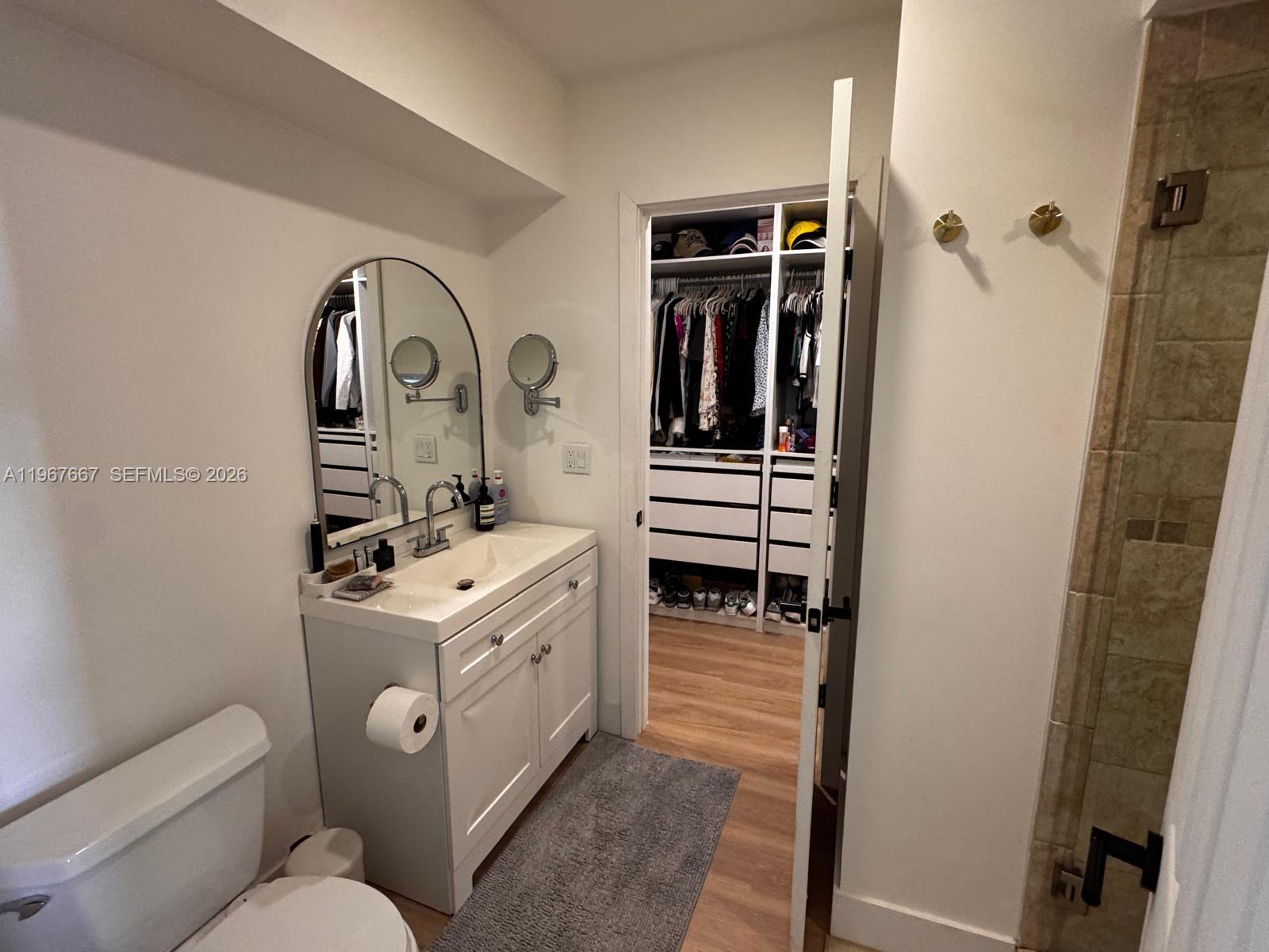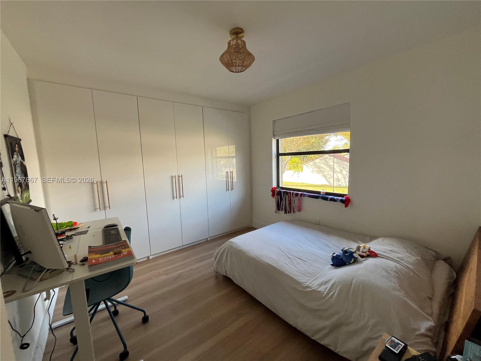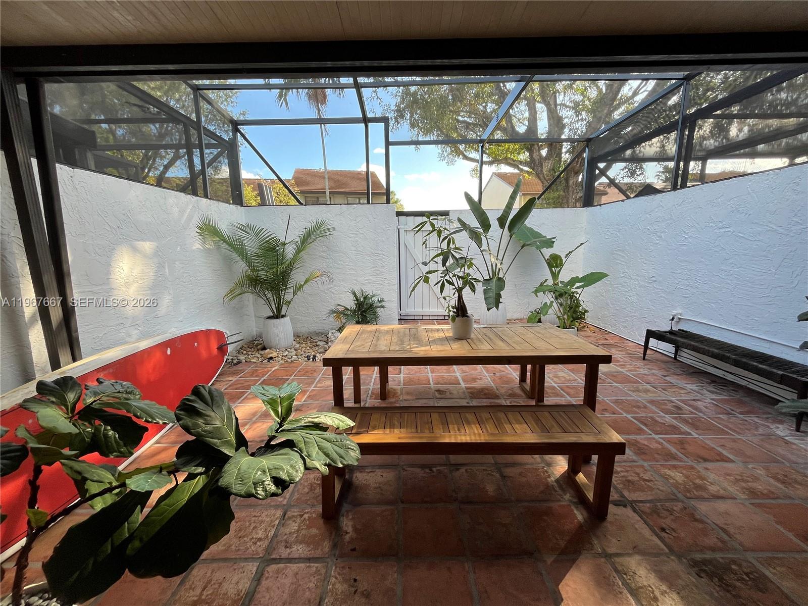 Welcome to Exclusive Calusa Point!. Amazing 3 bedroom, 2 bath townhouse impeccably remodeled filled with natural light and beautiful French doors opening to a large screened-in patio. The unit features open concept floor plan with high ceiling modern loft style main bedroom, wood plank floors throughout, new kitchen cabinets and appliances including an induction stove. Custom closets throughout including the entryway and plenty of storage. Recessed / dimmable lighting throughout. New custom patio screen is elevated, new front gate and new front trellis. One bedroom and full bath on main floor. The unit has new exterior paint since December. Community offers 24 hour security gated entrance, swimming pool, child playground, tennis courts and basketball court. Excellent location near major highways, schools and shopping malls. Lot and Block that will qualify for all financing. Plenty of guest parking. This unit offers many upgrades, won't last!