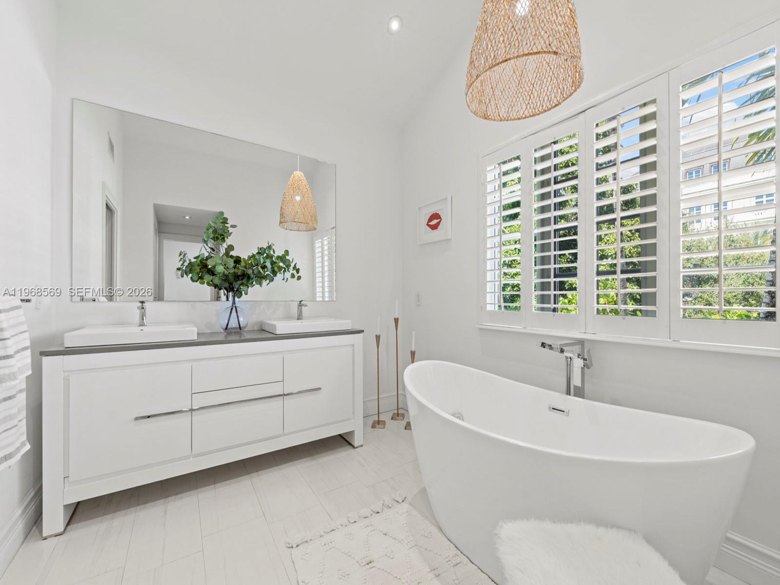 Discover this exquisite 5-bedroom, 4.5-bath residence, crafted in 2009, amid a lush tropical oasis. The bold red facade, topped by a pristine white metal roof & accented with elegant stone pillars & a graceful balcony, exudes timeless sophistication. French doors connect seamlessly to a sparkling pool, inviting indoor-outdoor living. The gourmet kitchen captivates with vibrant red cabinetry, immaculate white countertops, premium stainless steel appliances & a wine fridge. The grand living space impresses with soaring vaulted ceilings, luxurious multi-toned hardwood floors, a stone fireplace & expansive windows flooding the interiors with natural light. Nestled in prestigious High Pines, this Miami masterpiece blends luxury, comfort & prime location.