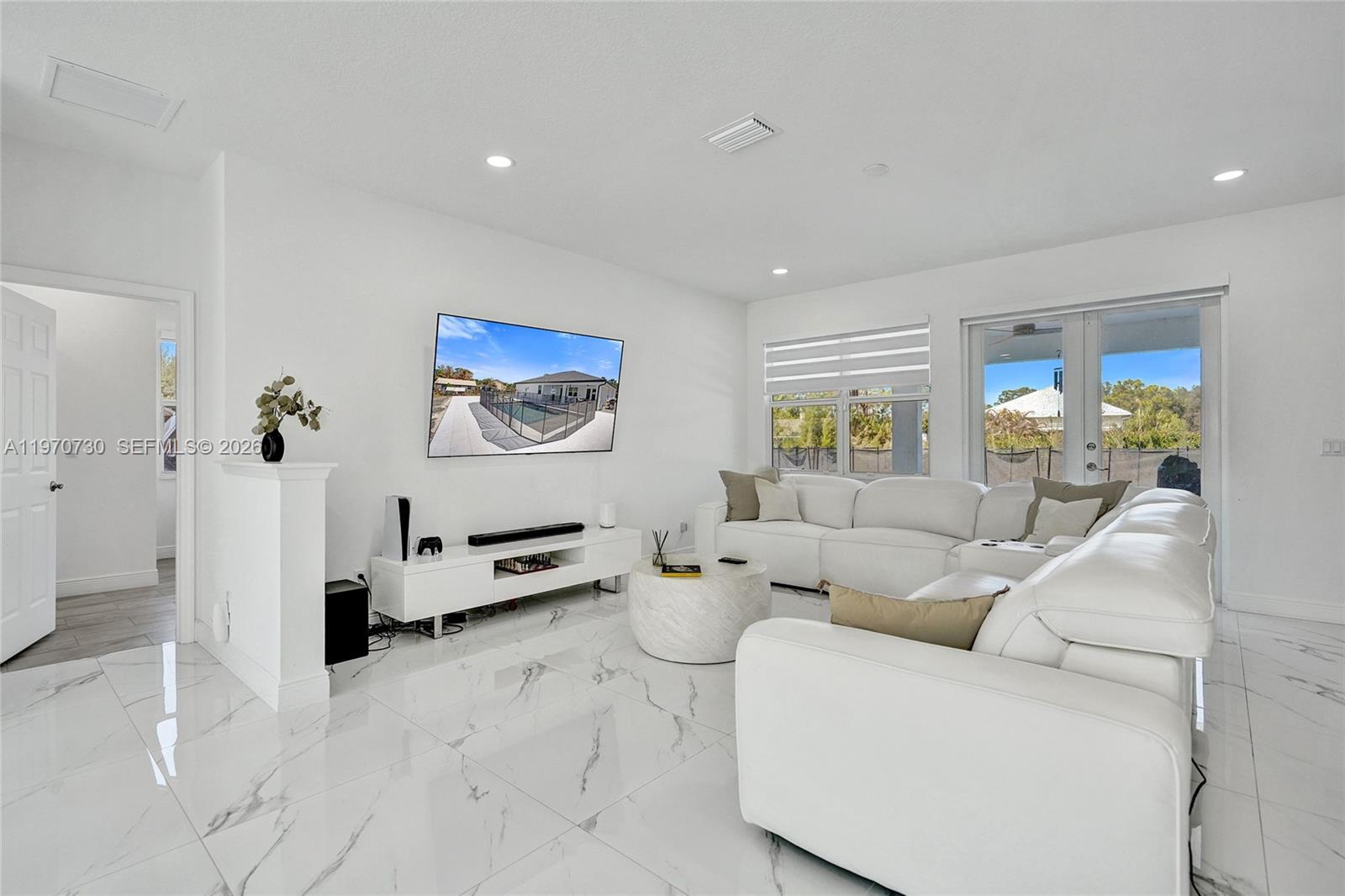STUNNING NEW CONSTRUCTION IN THE ACREAGE! THIS 5 BEDS 3 BATHS HOME WITH SALTWATER POOL AND 3-CAR GARAGE SITS ON 1.3 ACRES LOT AND FEATURES AN OPEN FLOOR PLAN, OVERSIZED QUARTZ KITCHEN COUNTERTOPS, STAINLESS STEEL APPLIANCES, AND TILE FLOORS THROUGHOUT, SPACIOUS BEDROOMS AND BEAUTIFULLY FINISHED BATHROOMS WITH QUARTZ COUNTERS. ENJOY A SALTWATER POOL WITH MARBLE DECKING AND A COVERED TILED PATIO-PERFECT FOR ENTERTAINING. IMPACT WINDOWS AND REVERSE OSMOSIS WATER SYSTEM INCLUDED***VERY EASY TO SHOW***FOR SHOWING INSTRUCTIONS SEE BROKER REMARKS**PRESENT OFFERS**Information herein is deemed reliable and subject to errors, omissions, and changes without notice. All property information should be independently verified
