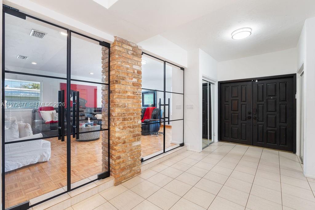 Beautiful and spacious 1-story home on an oversized lot, offering incredible indoor–outdoor living. This property features a bright open layout, large family and living rooms, vaulted ceilings, and classic brick accents. The expansive kitchen includes ample counter space and a center island, perfect for entertaining. Enjoy a stunning screened-in patio with a sparkling pool providing year-round enjoyment. Generously sized bedrooms, updated bathrooms, and a large primary suite with walk-in closet add comfort and convenience. Additional features include a circular driveway, laundry room, and a versatile extra room ideal for office, gym, or guest space. A rare opportunity to own a well-maintained home with great character and exceptional space.