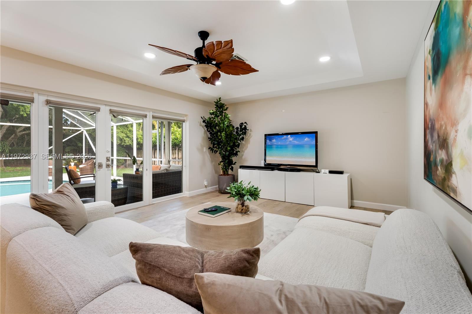 Welcome to Palmetto Bay bliss among the oak trees at Casa Roble! Tucked away on a private cul-de-sac, this beautifully updated two-story home offers the space, setting, and lifestyle you are looking for. The location is peaceful and perfect for enjoying the outdoors while remaining close to everything. Built in 1995, this 5BD/3BA residence features a functional layout with 4BD/2BA upstairs and 1BD/1BA downstairs, ideal for guests or a home office. The spacious living and dining rooms flow into an open kitchen and family room overlooking the pool and patio, creating the perfect setup for everyday living and entertaining. The eat-in kitchen features quartz countertops and ample prep space. Step outside to a private, oversized backyard shaded by magnificent oak trees. There’s plenty of room to roam, space for a boat, and a screened-in pool for indoor/outdoor Florida living year-round. Upstairs, the primary suite offers two walk-in closets and a beautifully updated bath with dual vanities, a separate shower, and a freestanding soaking tub. Additional highlights include PVC plumbing, a 10-year-old roof, two A/C units, mixed impact protection, and an EV charger. Play in the backyard and cul-de-sac, or hop on bordering paths, steps away from Coral Reef Park, Deering Estate, & top-rated public/private schools. Privacy, space, and an exceptional backyard, all in a premier cul-de-sac setting. Who is ready to call this peaceful, sought-after neighborhood and house, HOME?
